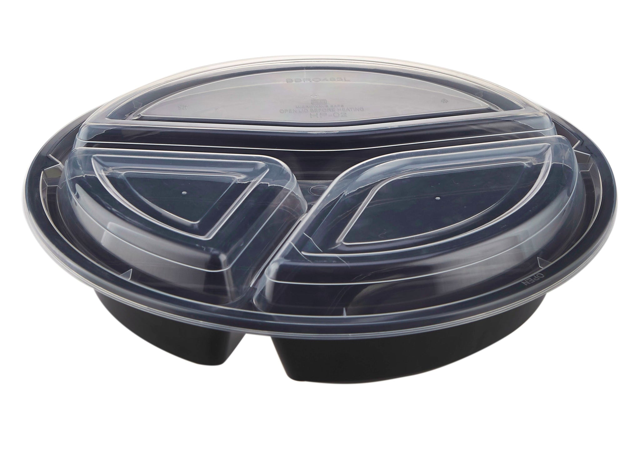 Hotpack Lids for Black Base Round 3 Compartment Container (Only Lid), 1420 ml, 300 PCs
