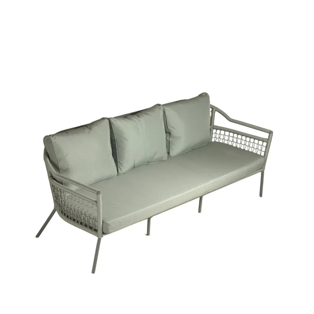 • Powder coated aluminum frame covered in rope fiber and cushions made of synthetic fiber to withstand all weather conditions.