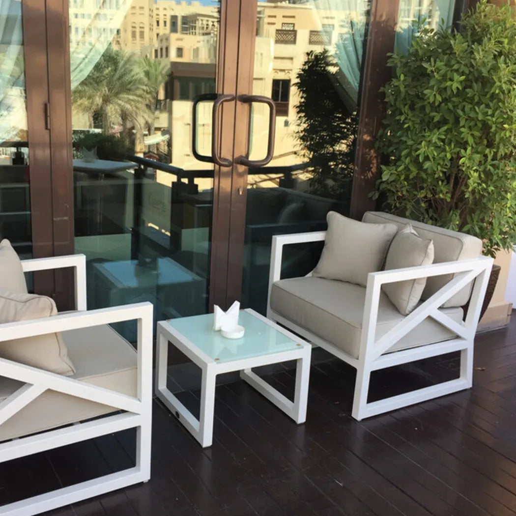 • Powder coated aluminum frame with synthetic fiber cushions to withstand all weather conditions