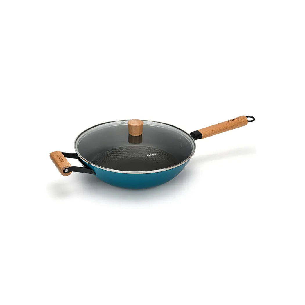 MELITA Series Wok Pan With Handle And Glass Lid in Black/Beige/Blue Color, 4ltr. Capacity and 30 x 8.4 cm