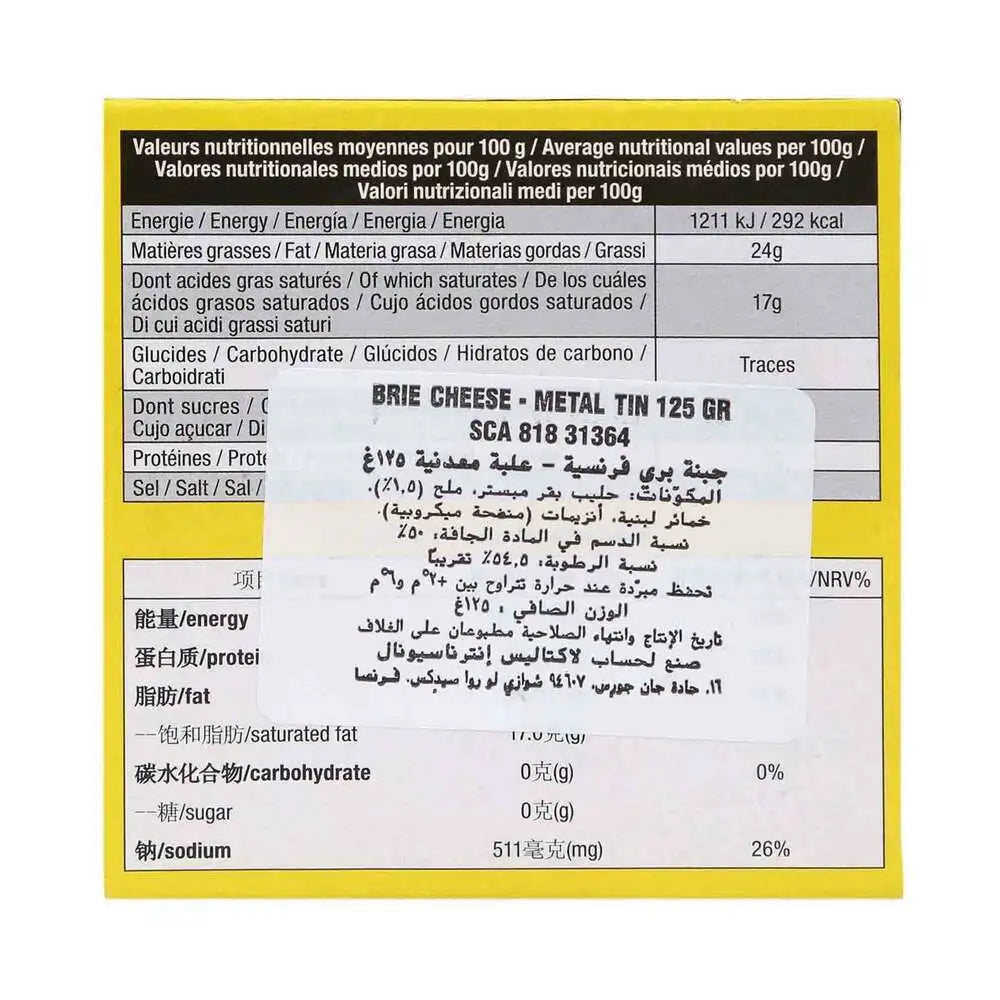 President Brie Cheese Portion offers a taste of authentic French tradition, crafted from 100% cow’s milk with a soft and creamy texture. Known for its mild flavor and snow-white, edible rind, President's Brie is a versatile cheese suitable for various culinary uses. Whether added to a cheese plate, baked for a warm snack, or included in a dessert torte alongside fruits, it enhances the dining experience with its rich and indulgent qualities. Each portion weighs 125 grams, perfectly sized for individual servings and creative culinary applications. Produced in the USA, President maintains the French cheese-making heritage, ensuring consistent quality and taste in every portion of this beloved Brie cheese. Ideal for gatherings or everyday enjoyment, President Brie Cheese Portion promises to elevate any meal with its creamy texture and delightful flavor profile.