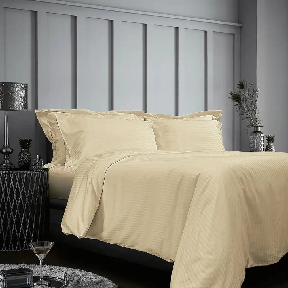 Experience the epitome of luxury with our Zen Stripes Queen-Sized Flat Bed Sheet, tailored specifically for the discerning tastes of hotels, restaurants, and catering services. Crafted from 100% cotton sateen with a 250 thread count, this exquisite bed sheet combines functionality with elegance. Its wrinkle-free design ensures effortless maintenance, presenting an always pristine and welcoming bed. Embrace the serene beige tones and subtle stripes that evoke a sense of calm and sophistication in any room setting.