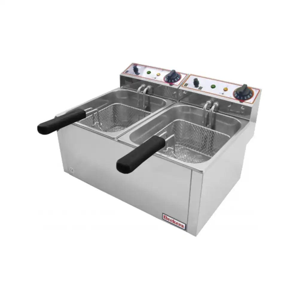Elevate your culinary experience with the Beckers FR 6+6LT Stainless Steel Double Deep Fryer, ideal for cafes, hotels, and restaurants. Boasting dual 6-liter compartments, this space-efficient appliance, powered by 2 X 3 kW electric heating mechanism, ensures simultaneous frying for diverse menu offerings. Its durable stainless steel construction adds a touch of sophistication to commercial kitchens, promising efficiency, durability, and versatility in every fry.