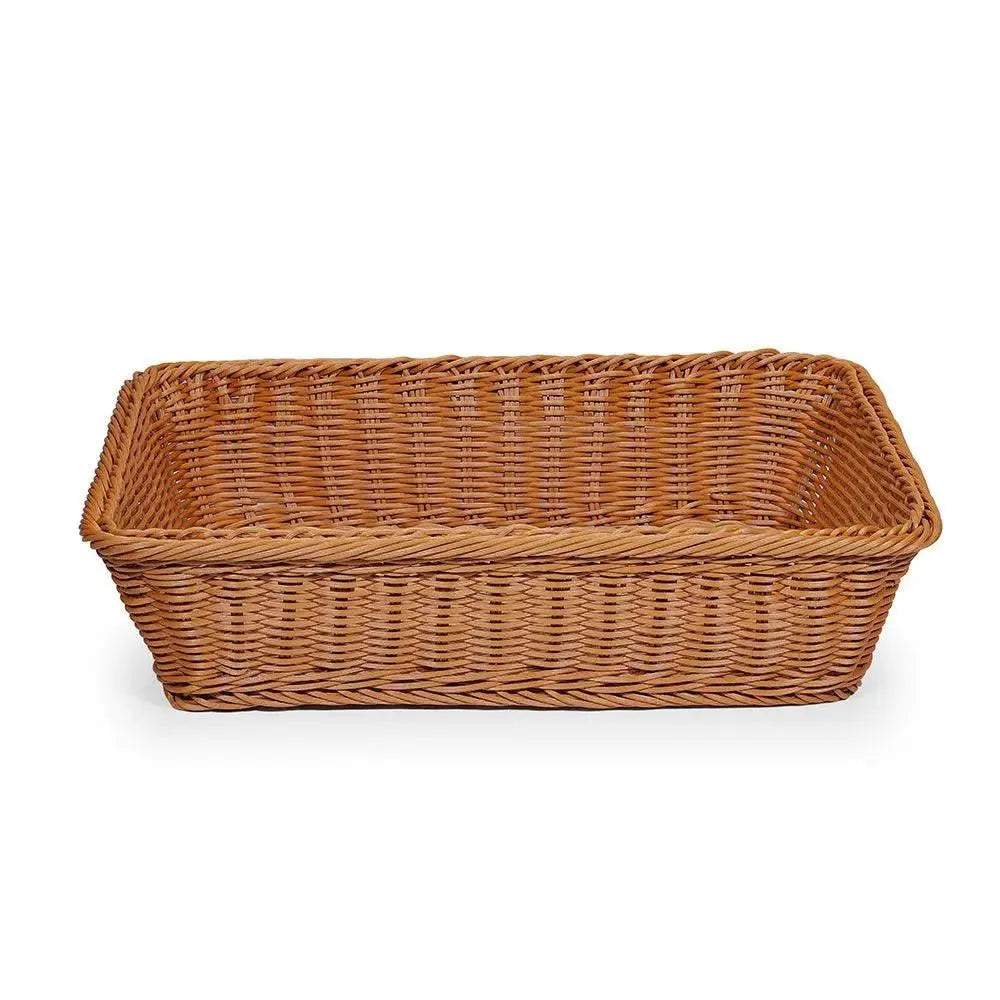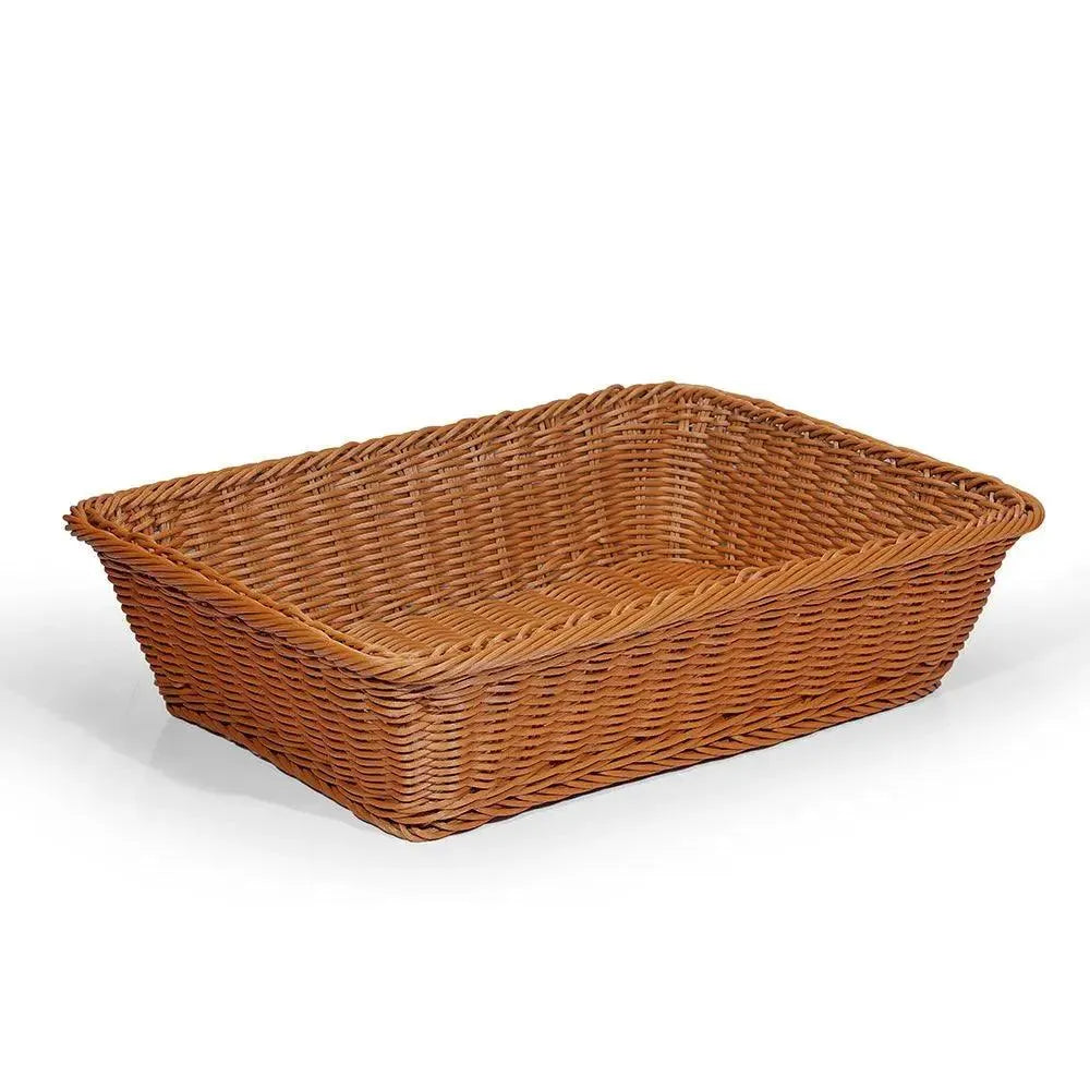 Elevate your dining experience with the Horeca PRB403010 Poly Rattan Display Basket in rich brown (40 X 30 X 10 cm). Crafted for both style and durability, this versatile basket seamlessly showcases your culinary creations, turning ordinary displays into extraordinary showcases. Impress guests with its elegant design, making it the perfect addition to tabletop decor, ensuring your presentations are not only organized but visually appealing. Capture attention and enhance your food displays effortlessly with this eye-catching brown poly rattan weave basket.