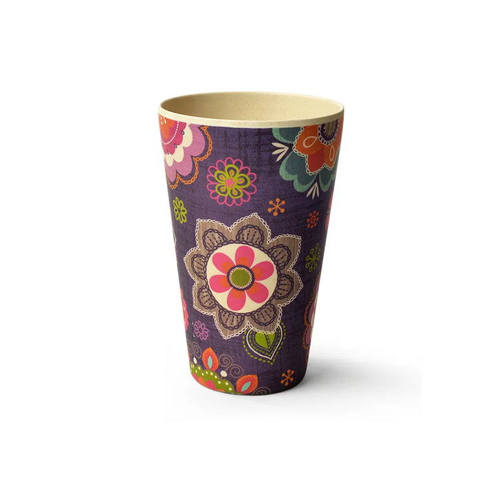 Bamboo made Purpur Printed Glass in Purple/Green/Beige Color, 400 ml