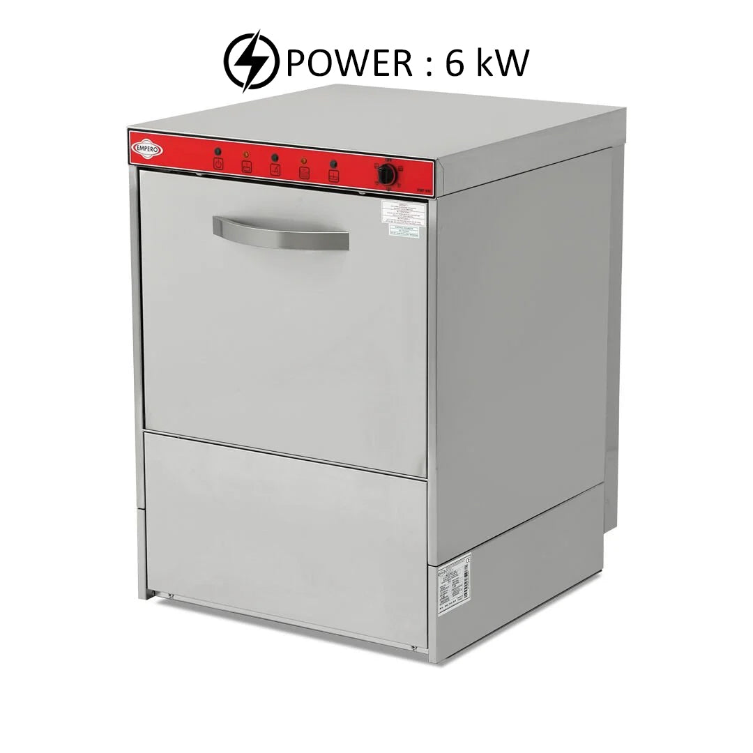 The Empero Undercounter Dishwasher is designed for commercial kitchens, offering three program options and economic water and energy consumption. Its large basket size accommodates plates up to 320 mm in diameter. Stainless steel resistors and a magnetic cover safety sensor ensure durable and safe operation. With a wash water temperature of 55-60°C and rinse water temperature of 80-85°C, it provides reliable and efficient cleaning. Made in Turkey, it's a perfect addition to any professional kitchen.