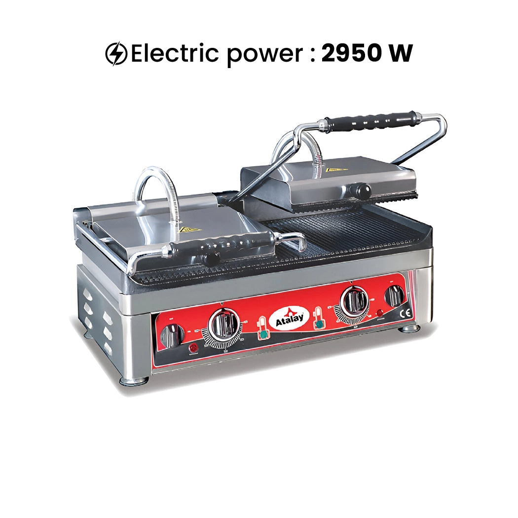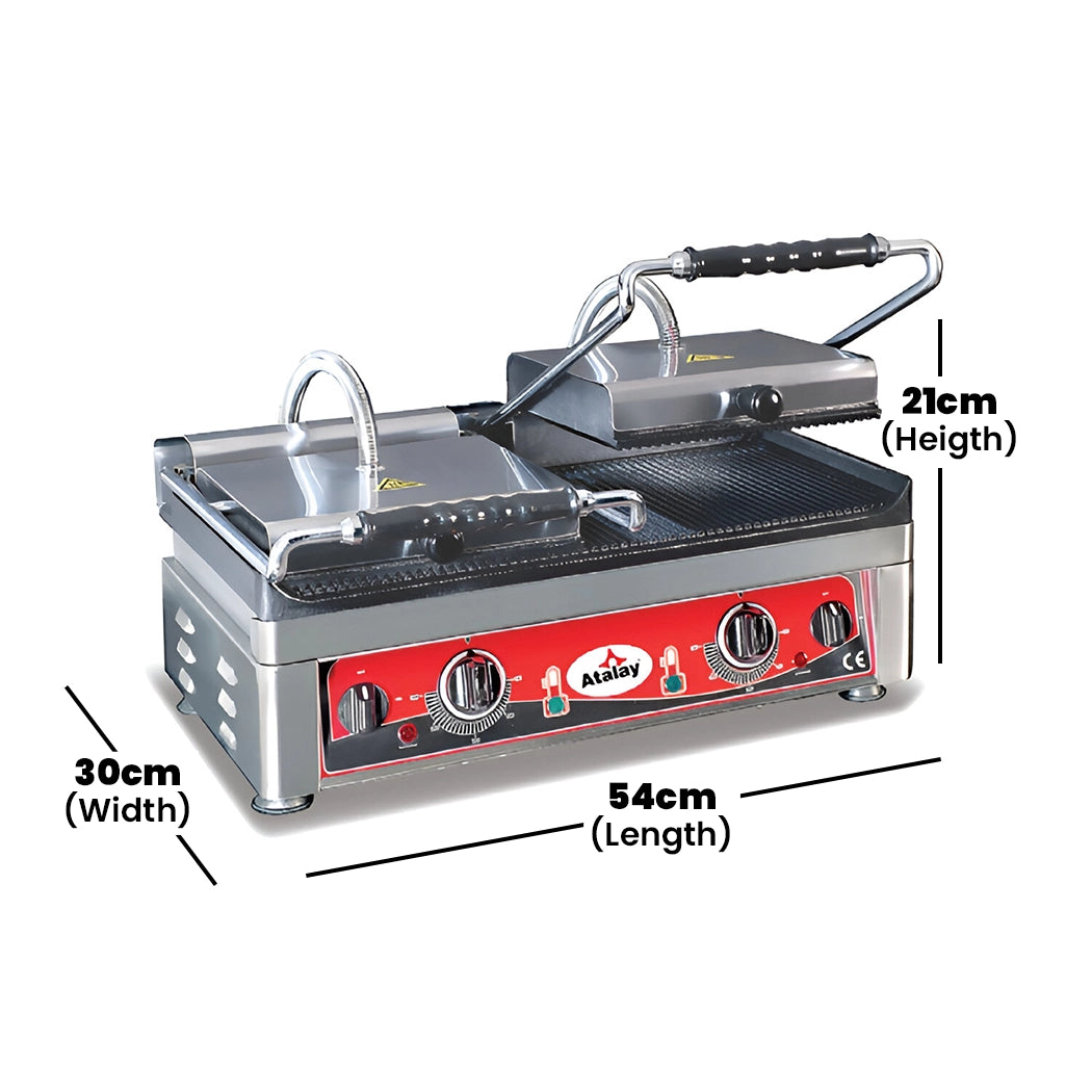The Empero Electric Contact Grill Double Head is a commercial cooking device designed for high-volume use. It features a hygienic and safe design, a stainless steel body, and a temperature range of 50-300°C, making it perfect for grilling a variety of food. With its dual heads, it increases efficiency and productivity, making it ideal for restaurants, cafes, and food stalls with high demand. Made in Turkey, it ensures high-quality construction and reliability, making it a great addition to any commercial kitchen.