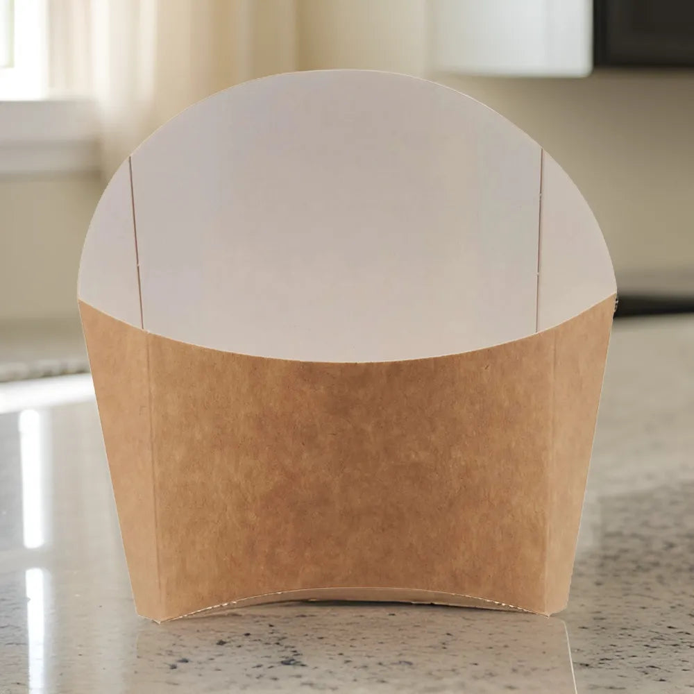 The Hotpack Brown Top Wrapper Scoop is a practical and eco-friendly solution for serving nuggets, fries and other treats. Made from sustainable materials, this scoop features a brown top that adds a rustic charm to your presentation. Its sturdy construction ensures it can handle scooping without bending or breaking. Ideal for environmentally conscious businesses looking for stylish serving options.