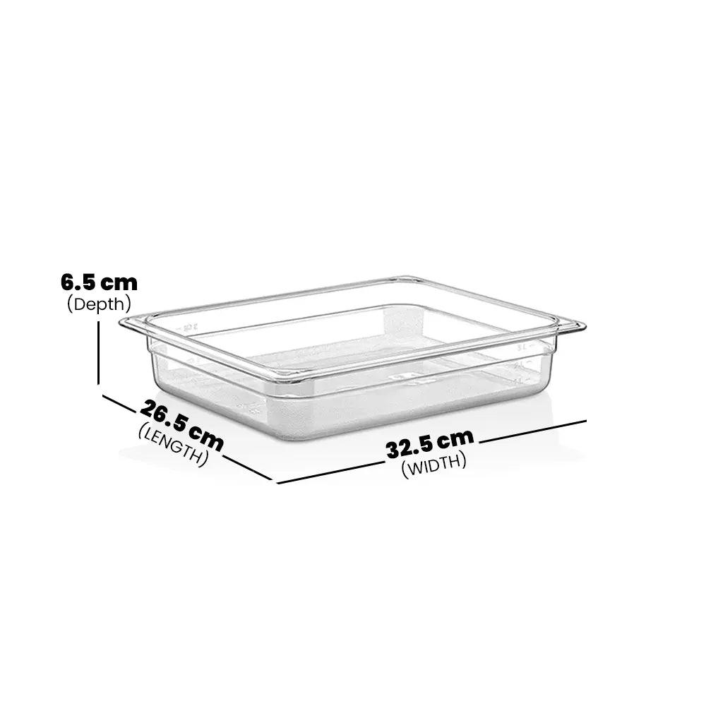 Rubber Plas Tech's Clear Plastic Container is designed for busy kitchens. It can withstand every day wear and tear because it is made of sturdy polycarbonate. It provides room for a variety of components at 6.5 cm deep. It can tolerate temperatures ranging from freezing to boiling (-40°C to 100°C), safely storing both hot and cold food. You can arrange several containers in your kitchen in a nice manner by using the stackable design, which saves space.