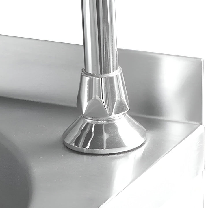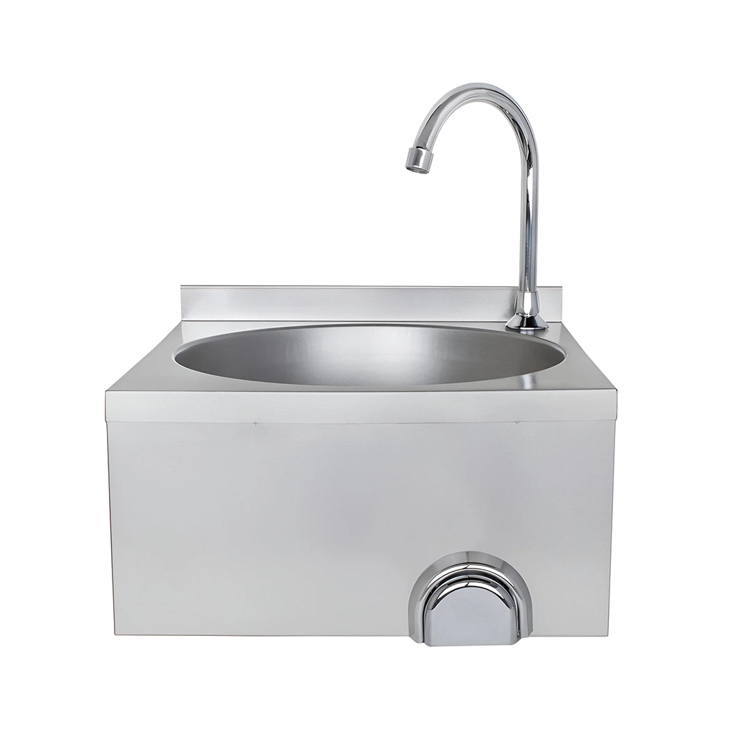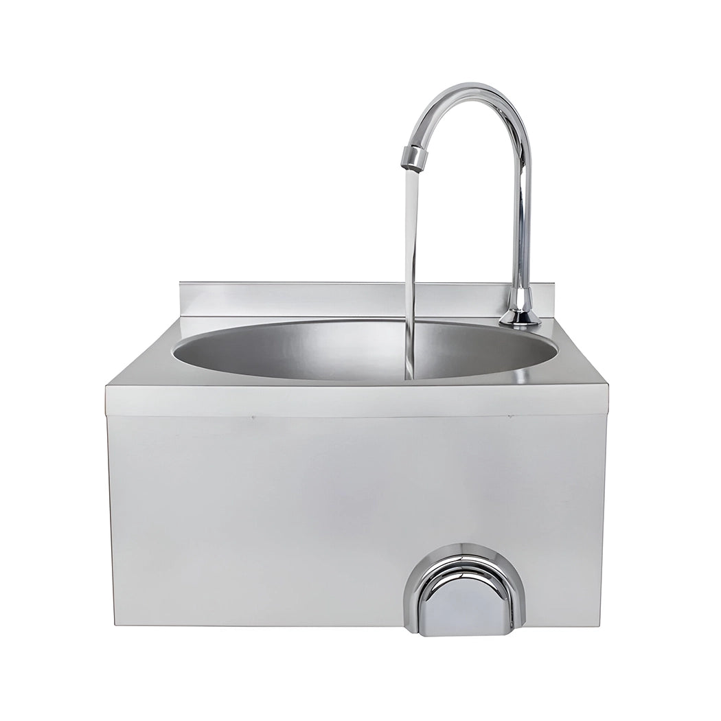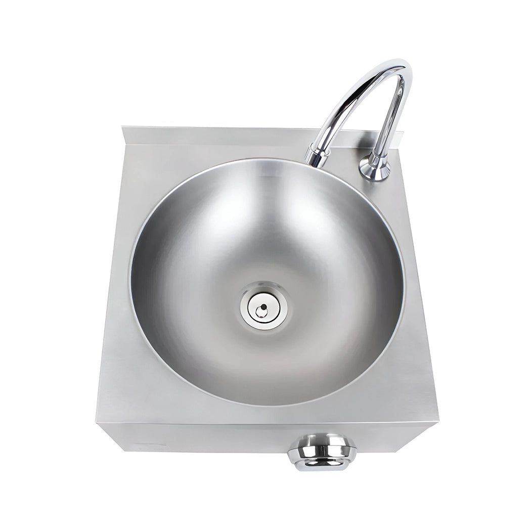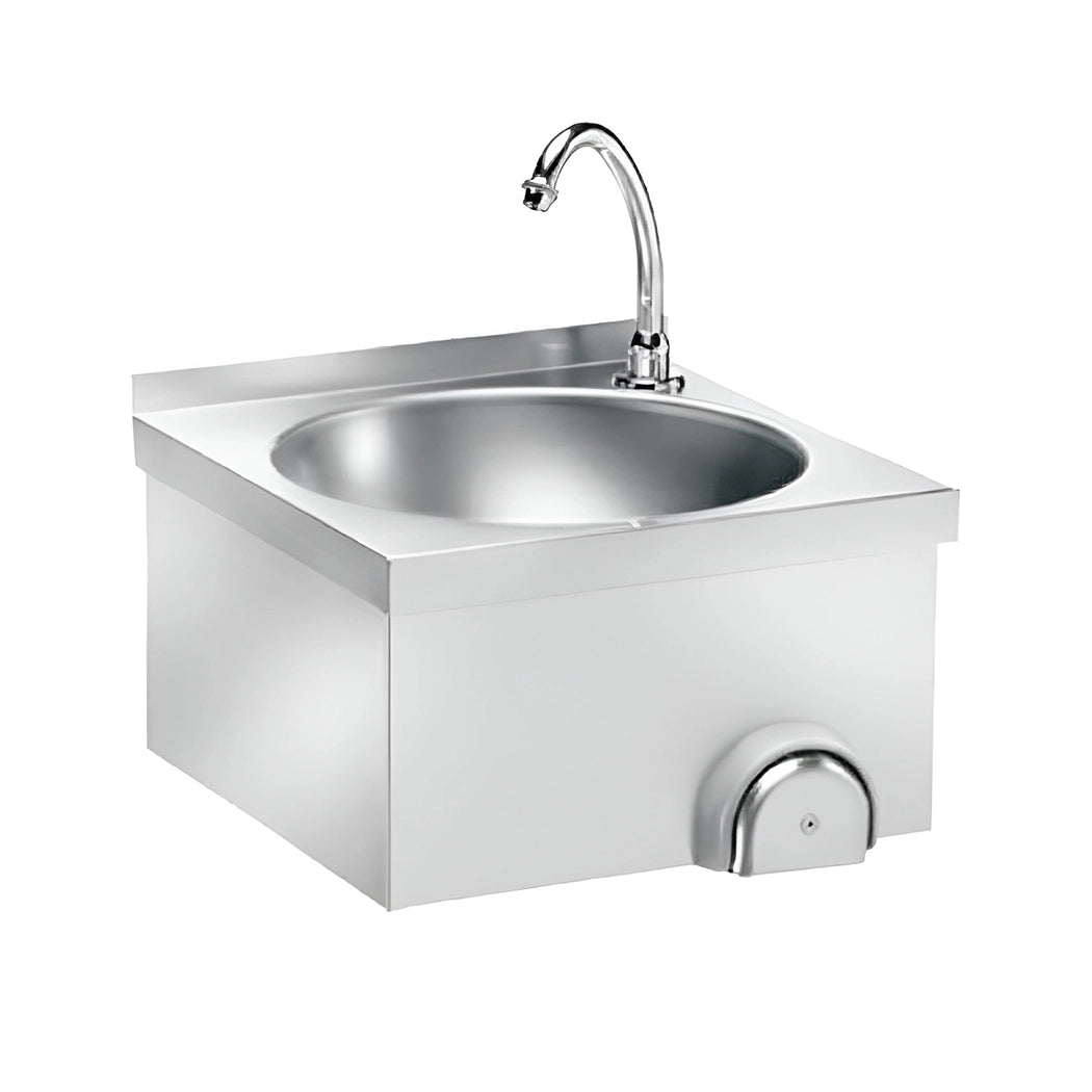 The THS Wall Mounted Hand Wash Sink is a convenient and hygienic hand washing solution, ideal for commercial and industrial environments. It features a knee-operated design, water tap, and back splash, making it a self-contained unit. Constructed from high-quality stainless steel, it ensures durability and ease of cleaning.