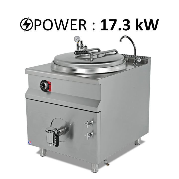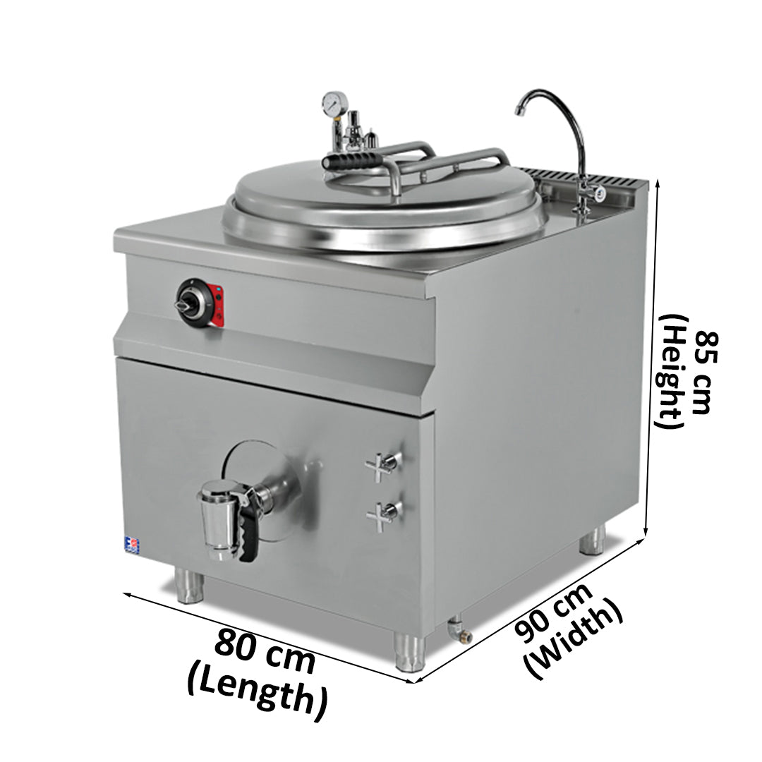 • Double jacket pan design ensures efficient heating and easy cleaning.