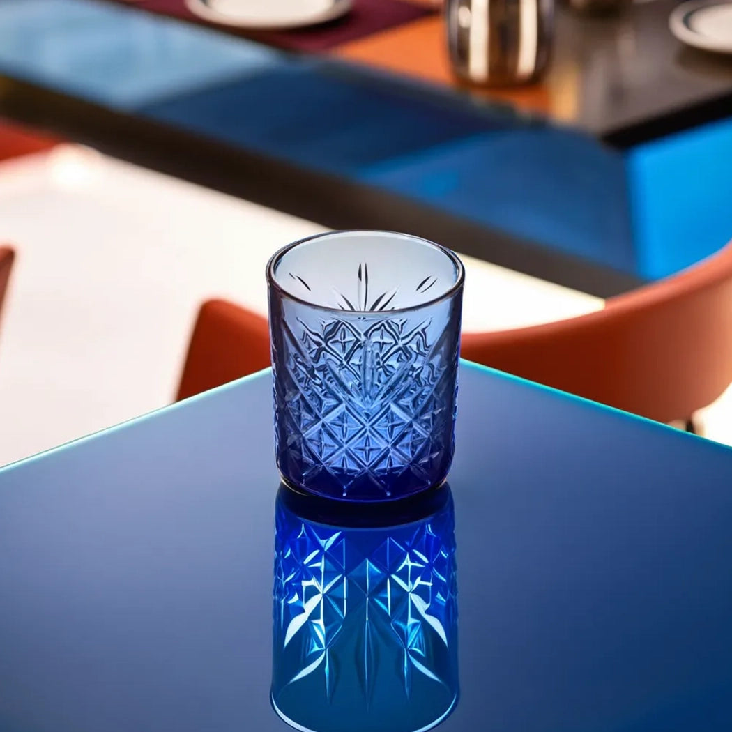 The Luminarc OF Salzburg London Topaz tumbler is a single 300ml glass made from glass in Europe, featuring a stylish blue color. Part of the Salzburg collection, it enhances beverage service in hotels and restaurants, offering both practicality and aesthetic charm to elevate dining experiences with modern elegance.
