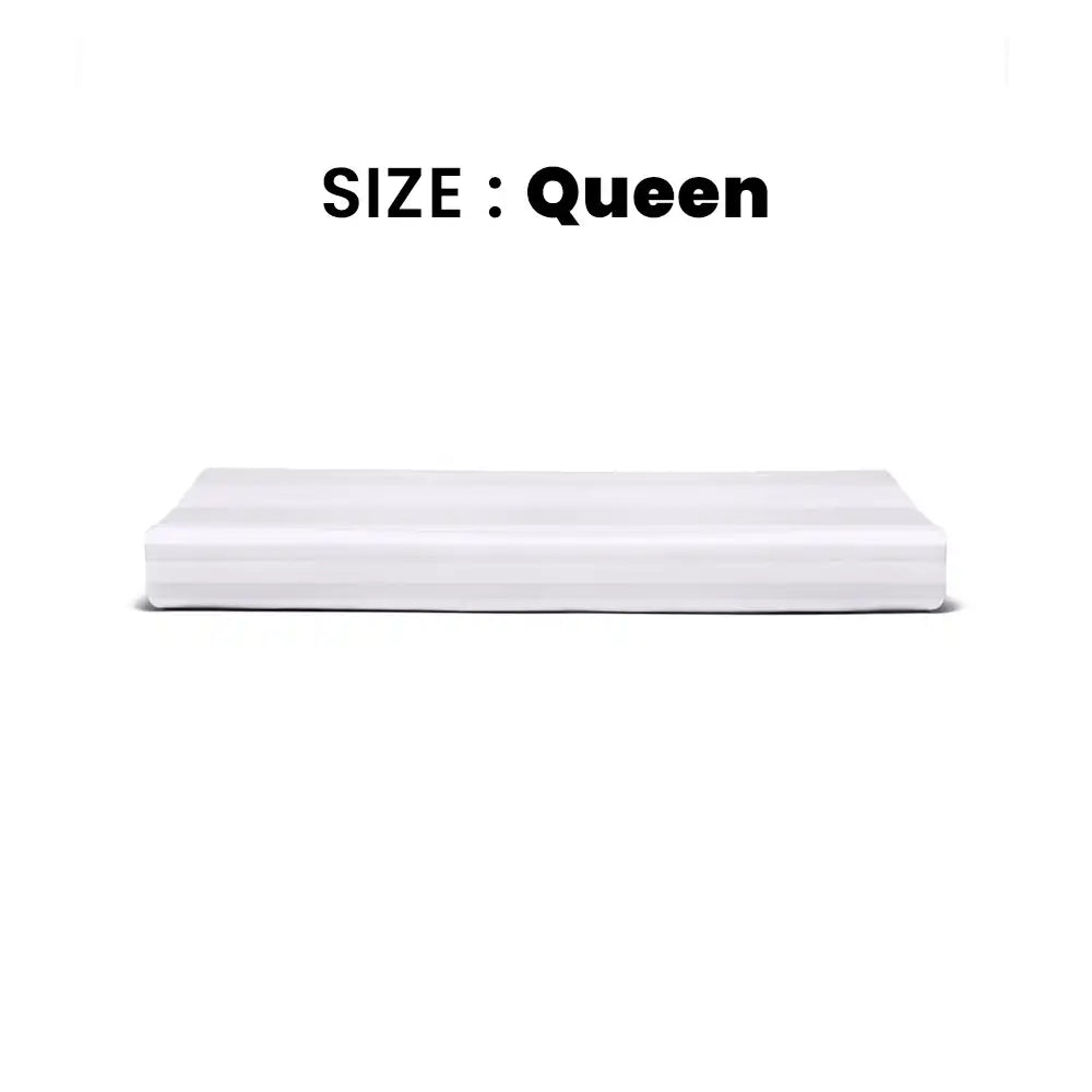 Indulge in the unparalleled comfort of our Eternal Stripes Queen Flat Sheet, expertly crafted from 100% Cotton Sateen with a 250 thread count. Featuring a pristine white hue and timeless stripe pattern, this flat sheet promises effortless maintenance with its wrinkle-free design, making it an ideal selection for hotels, restaurants, and catering services desiring premium quality and elegance.