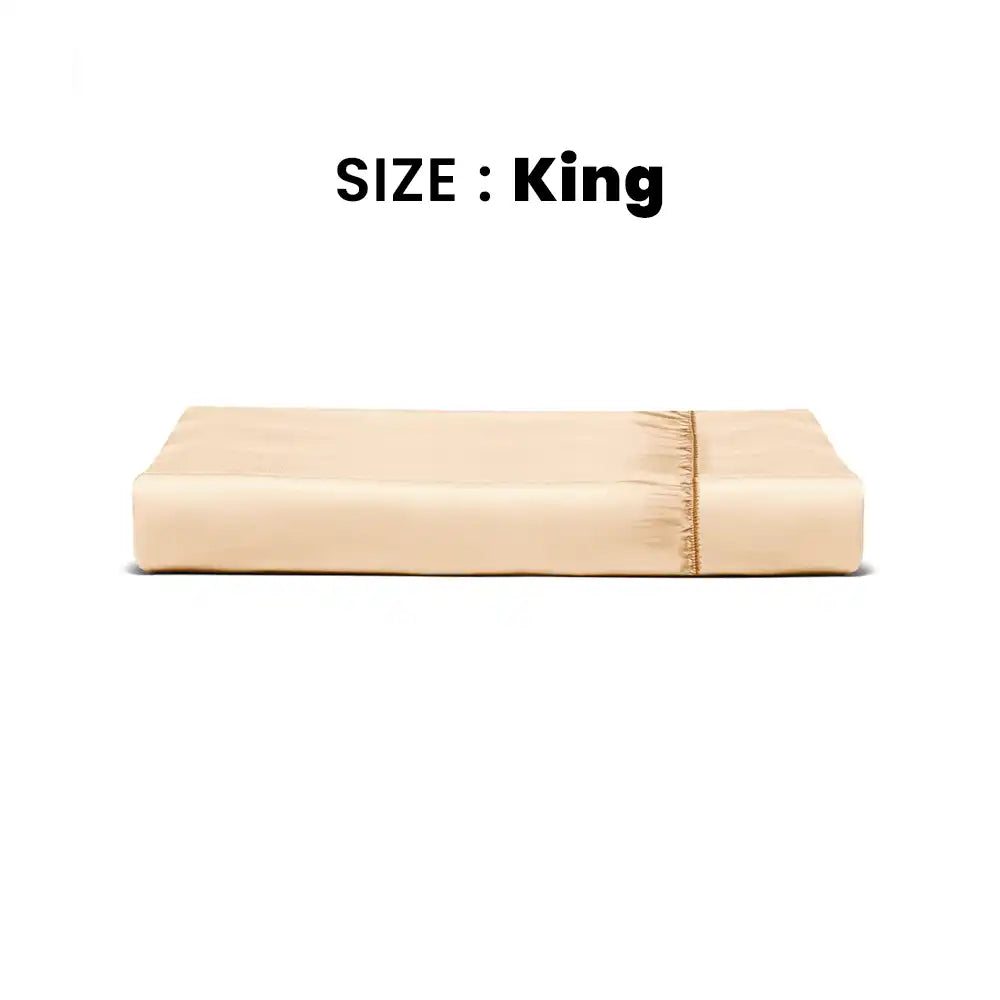 Exclusively crafted from Giza Cotton in a luxurious 300 thread count, our king-sized fitted sheet in elegant beige color ensures your bedding is enveloped in softness while its 360° elasticized detailing offers a snug fit for mattresses, designed with the sophistication demanding hotels, restaurants, and catering services envision.