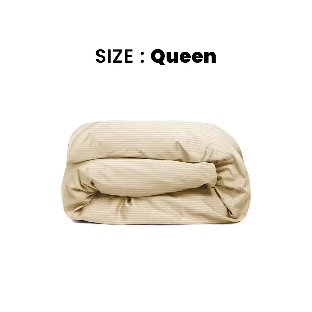 Designed specifically for the hospitality sector, this luxury Zen Stripes Duvet Cover blends elegance with functionality. Crafted from 100% premium cotton sateen with a 250 thread count, it ensures a sumptuous sleep experience. The durable rust-free snap button closure and secure corner ties offer both convenience and a pristine look for hotel, restaurant, and catering bedding collections. In a serene beige palette, it complements a myriad of interiors.