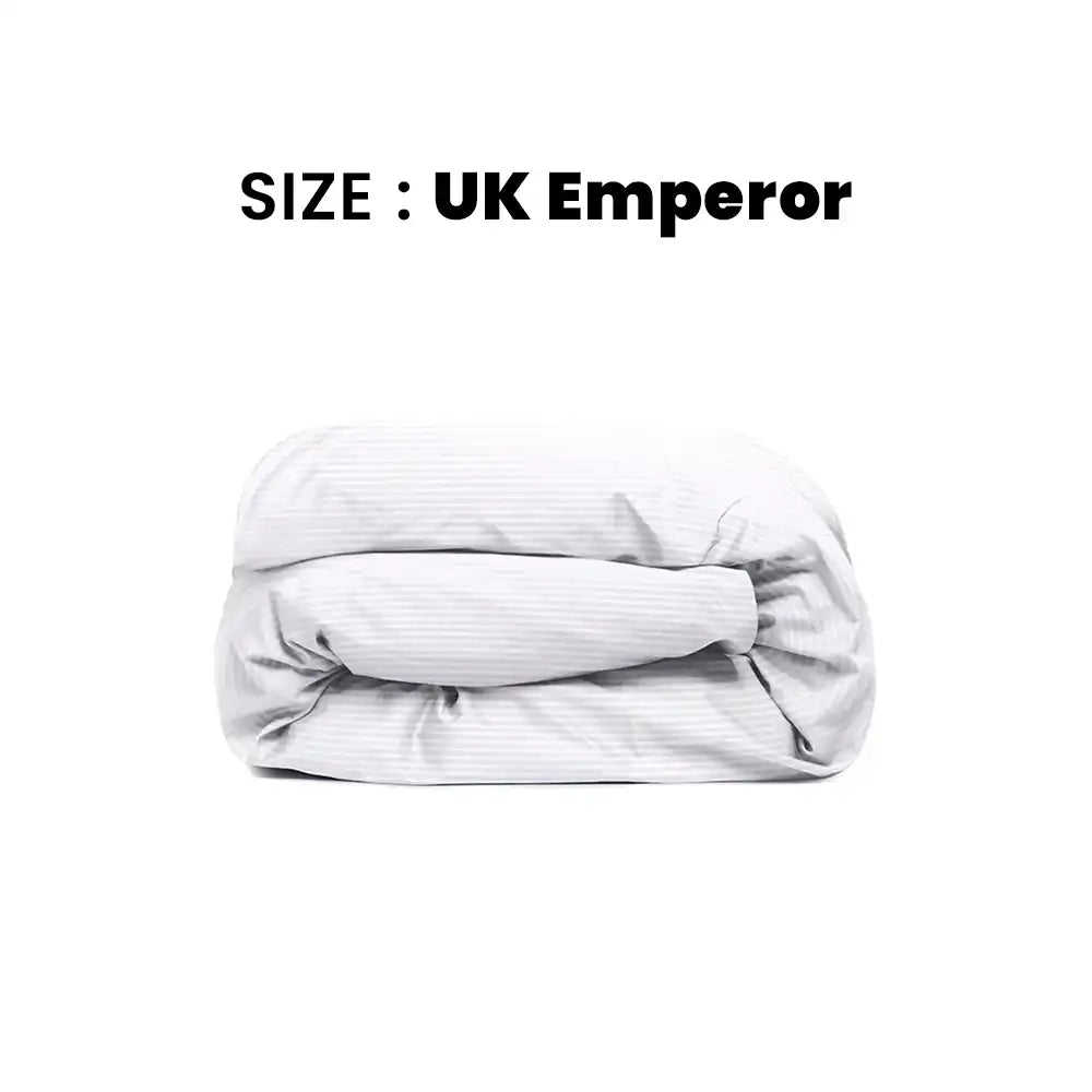 The Zen Stripes Emperor UK Duvet Cover, ideal for enhancing the guest experience in hotels, restaurants, and catering services, combines elegance with practicality. This white duvet cover, tailored from 100% cotton sateen with a 250 thread count, ensures a luxurious touch. Featuring secure corner ties and rust-free snap buttons for easy use.