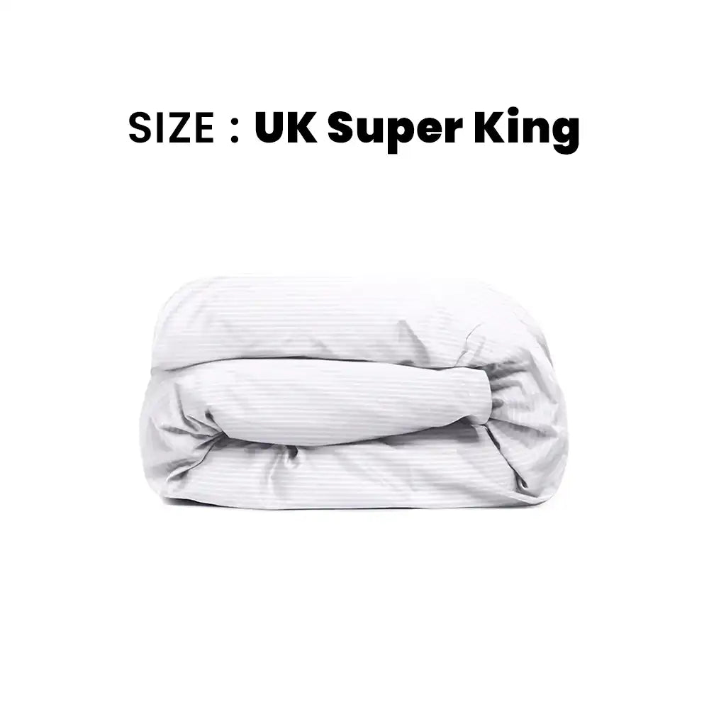 Designed exclusively for the premium hotels, our Zen Stripes Super King Duvet Cover in white champions both luxury and utility. Crafted from 100% Cotton Sateen with a 250 thread count, it ensures a serene night's sleep. It's meticulously tailored with corner ties and our signature rust-free snap button closure, seamlessly blending style with functionality.