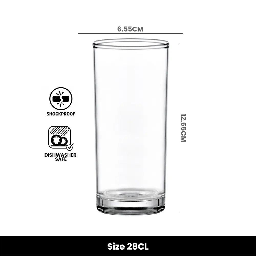 • Ideal Capacity: Each glass holds 28cl, perfect for serving highball cocktails, mixed drinks, and soft beverages.