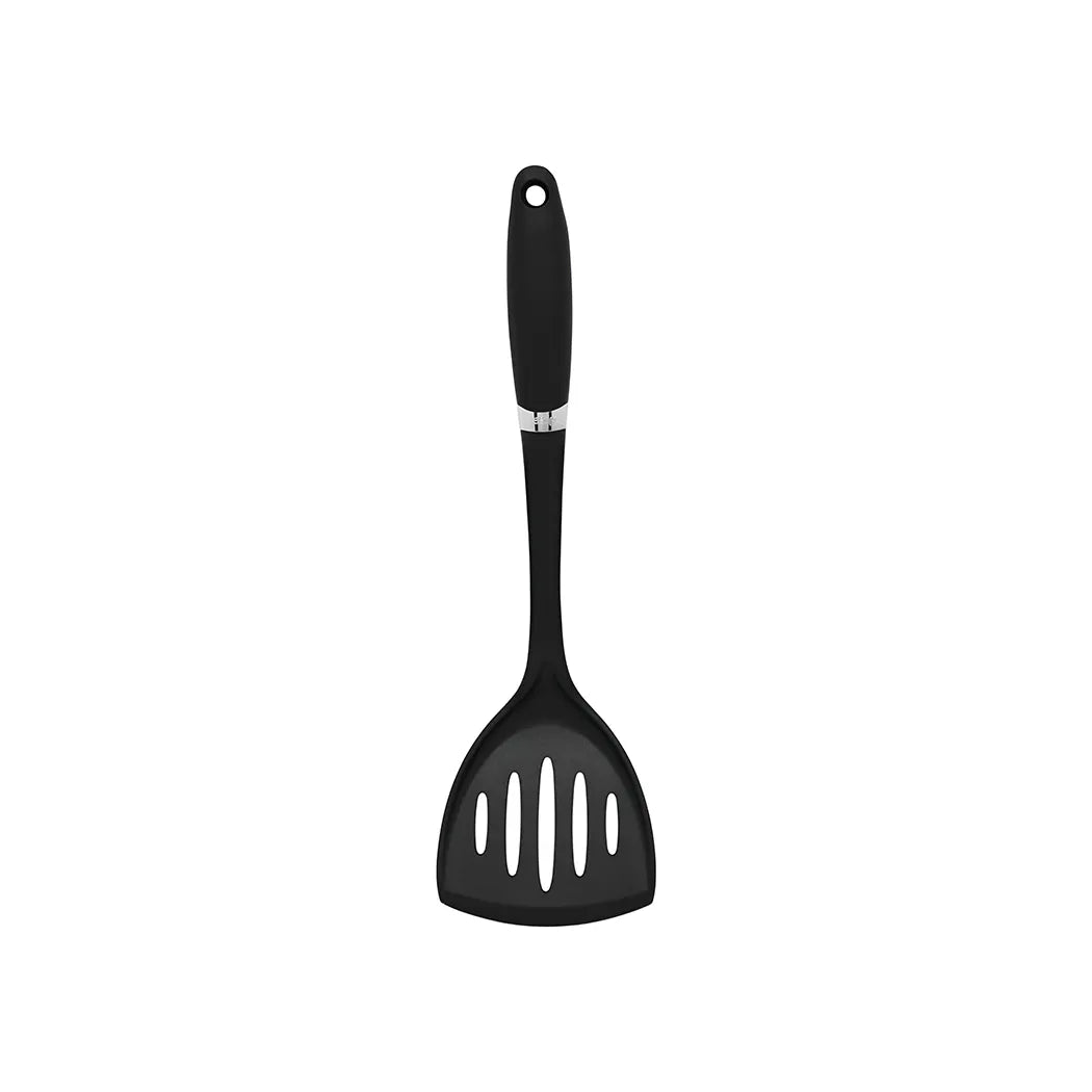 Indulge in the exceptional craftsmanship of the Professional Black Nylon Head Slotted Turner, meticulously engineered for superior functionality in upscale hospitality venues. This elegant nylon turner, caters perfectly to a myriad of cooking tasks, allowing seamless transitioning from flipping to serving delectable dishes. Its strategically integrated loop offers a convenient solution for hanging storage, optimizing spatial utilization in your culinary domain. Engineered to withstand temperatures of up to 180 degrees C, this turner maintains its durability in high-temperature settings while being gentle on your valuable cookware.