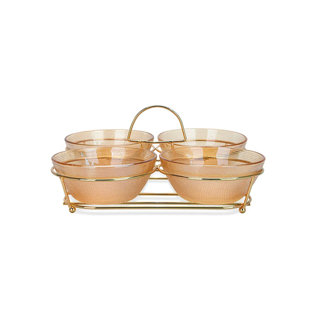 Pristine Series 4-Piece Glass Bowl with Metal Stand, 350 ml Capacity and 24 x 24 x 13 cm