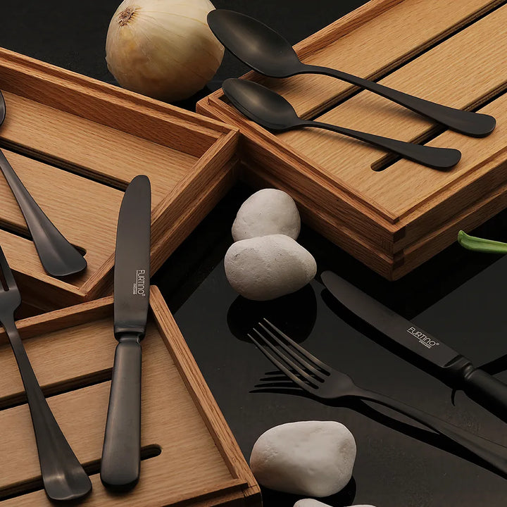Furtino England Baguette 18/10 Stainless Steel Dessert Knife Matt Black, 23cm, Pack of 6