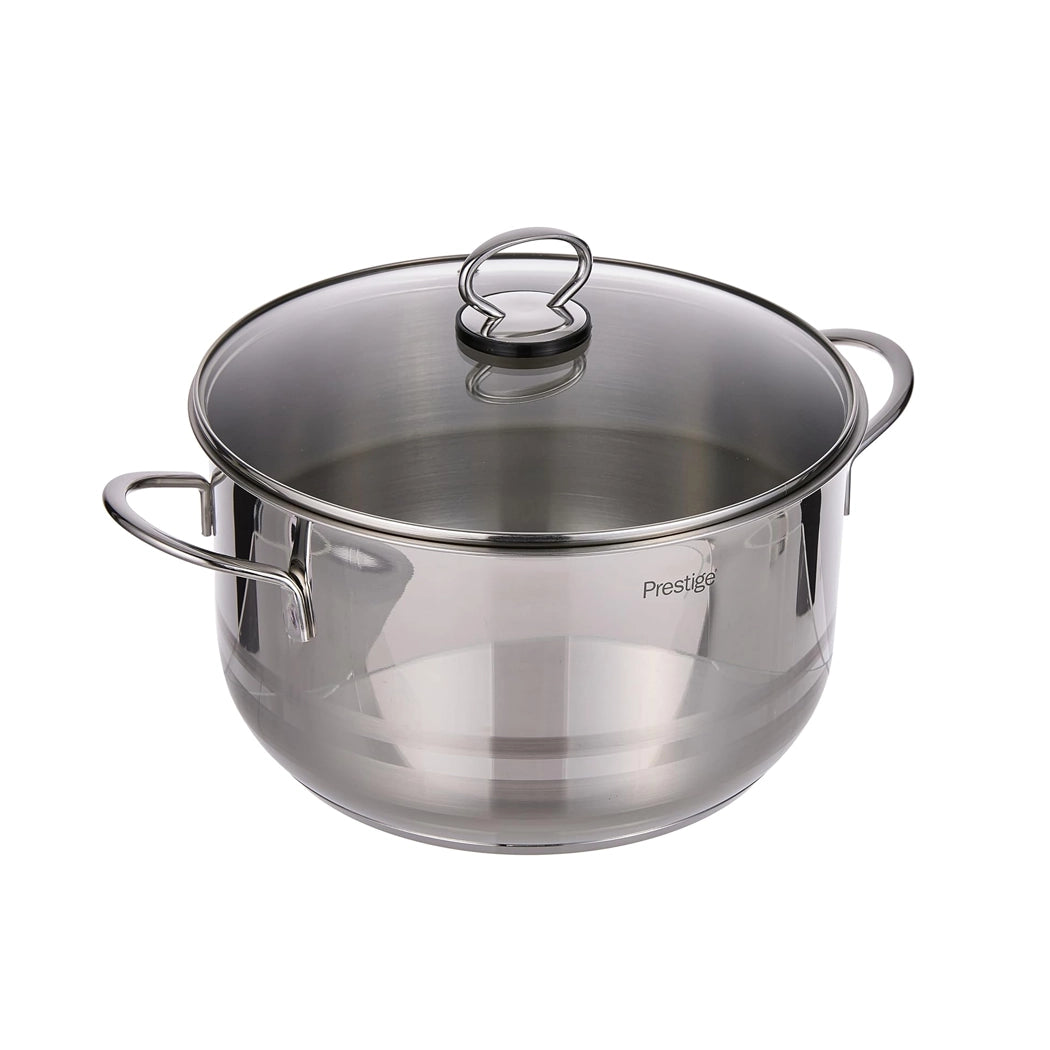 Prestige Stainless Steel 26 cm Induction Compatible 7.3L Casserole With Glass Lid, Silver