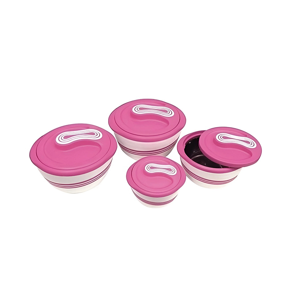 Introducing the Winsor Palazio Matt Casserole Dish Set, a stylish addition to any professional kitchen, restaurant, or catering event. Designed in a sophisticated pink color, this set includes four pieces with varying capacities of up to a generous total of [500,1000,2000,2500] ml. Each dish is crafted with durable plastic & stainless steel, making it long-lasting while maintaining an elegant matte finish. Its lightweight design at just [3.45 kg] ensures easy handling, storage, as well as effortless cleaning. Enhance your culinary presentations with these eco-friendly soft-touch casserole dishes.