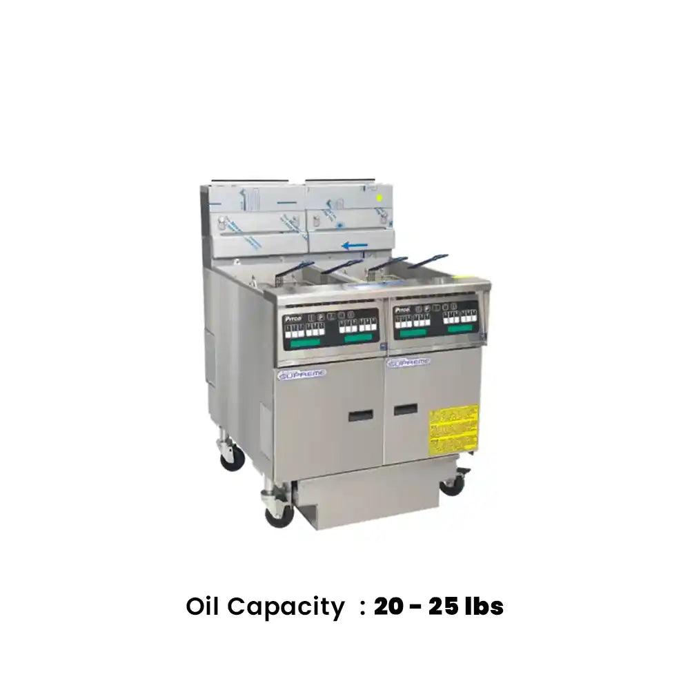 • Handles 20-25 LB of oil, meeting demands for high-volume frying applications.