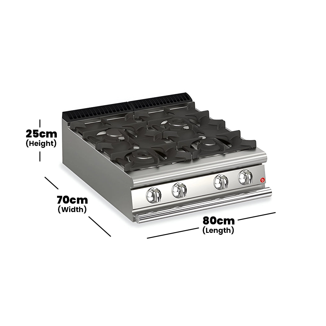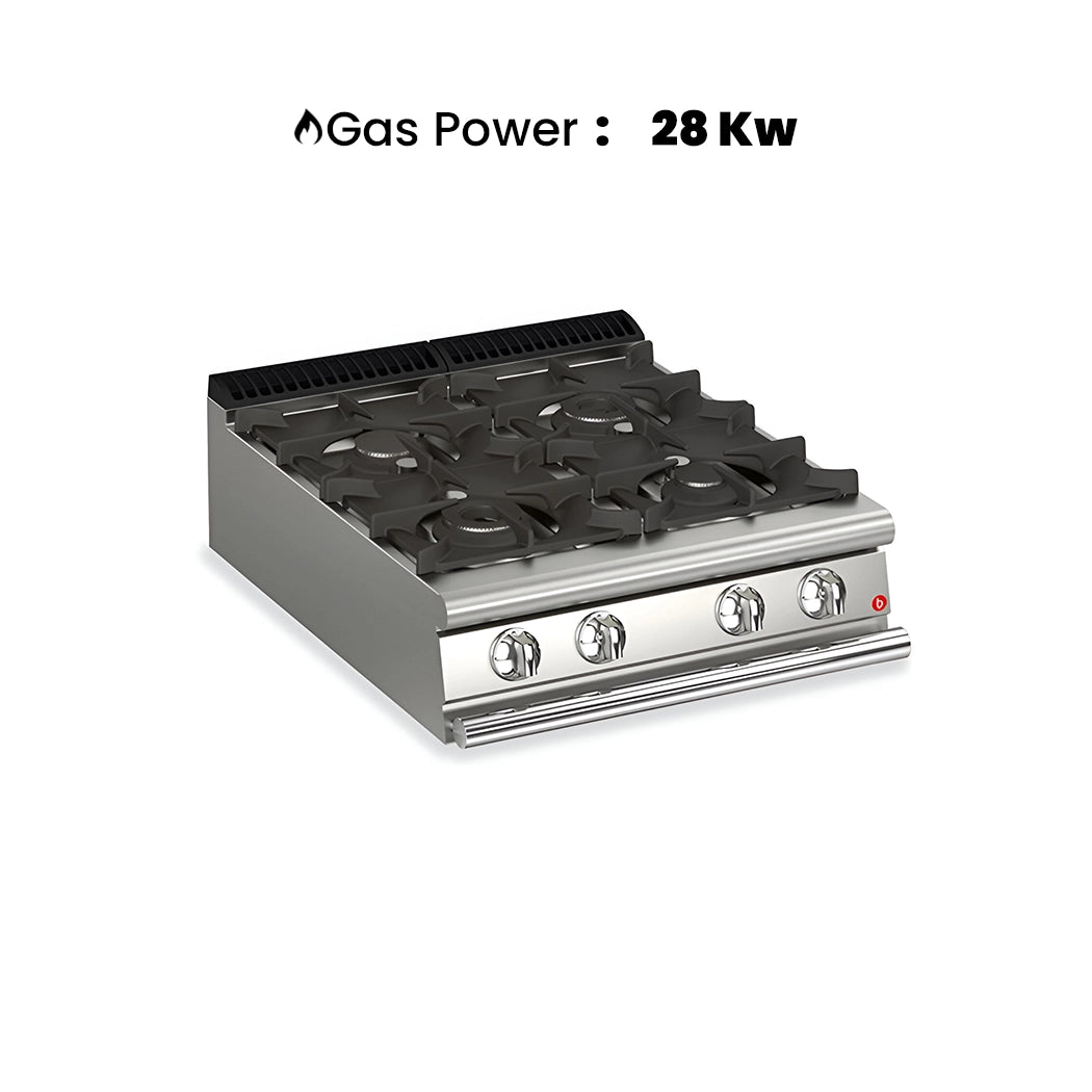 Baron Q70PC/G8008 4 Burner Tabletop Gas Cooking Range, Gas Power 28 kW, 80 x 70 x 25 cm