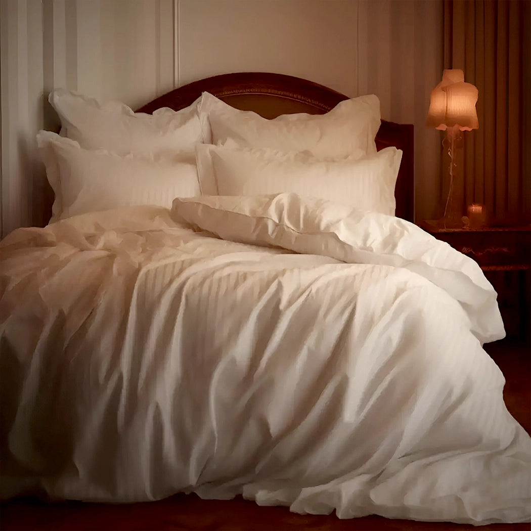 Introducing the Zen Stripes Flat Bed Sheet, a perfect blend of comfort and style designed for the discerning hotels, restaurants, and catering industry. Crafted from 100% cotton sateen with a luxurious 250 thread count, this pastel pink bed sheet promises a sublime sleeping experience. Its wrinkle-resistant fabric ensures effortless presentation, enhancing any sleeping quarter's elegance and comfort.