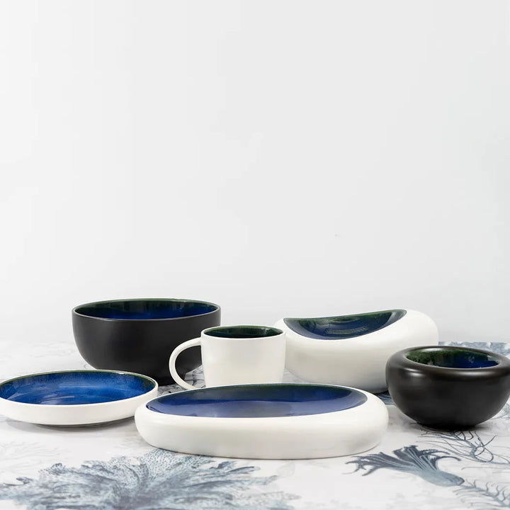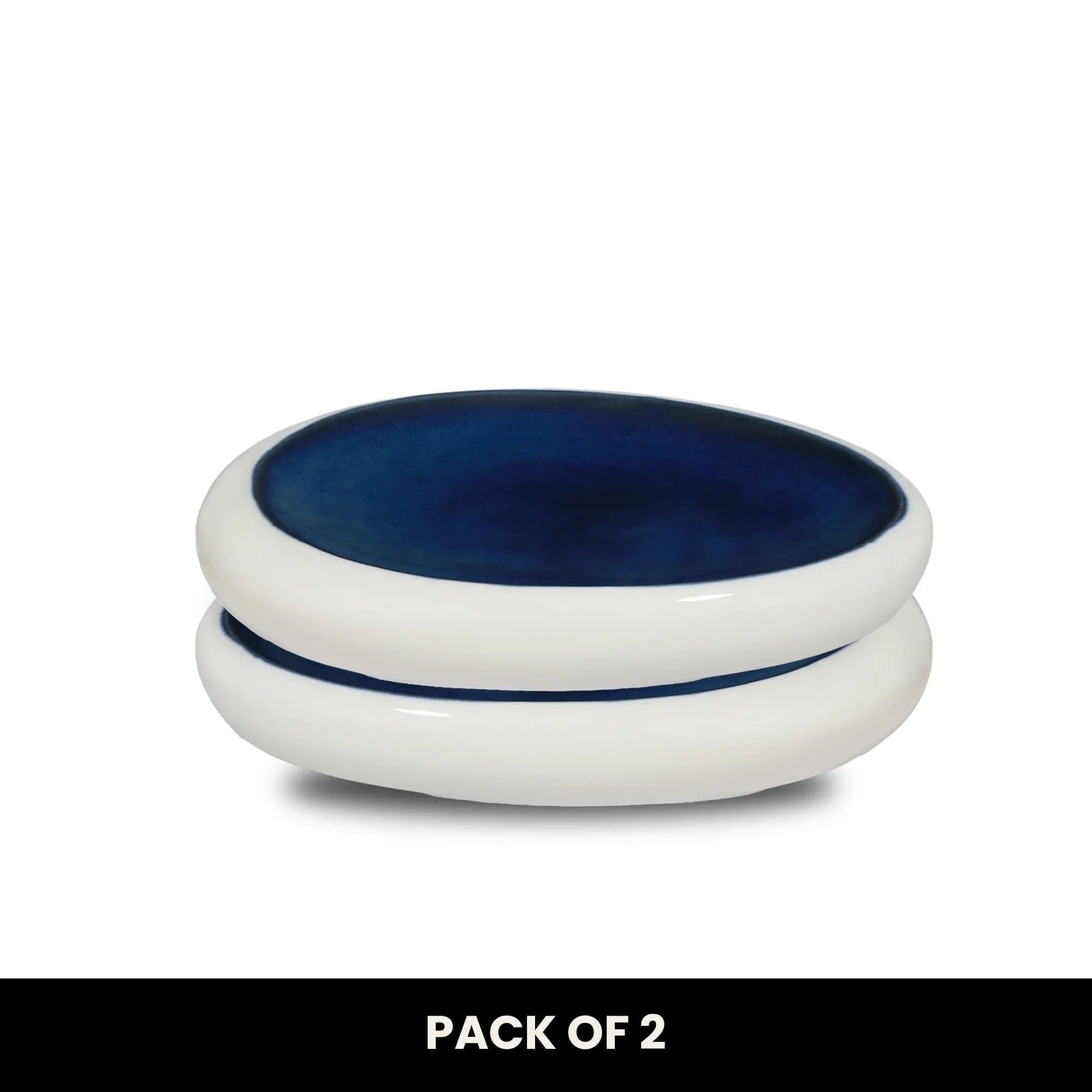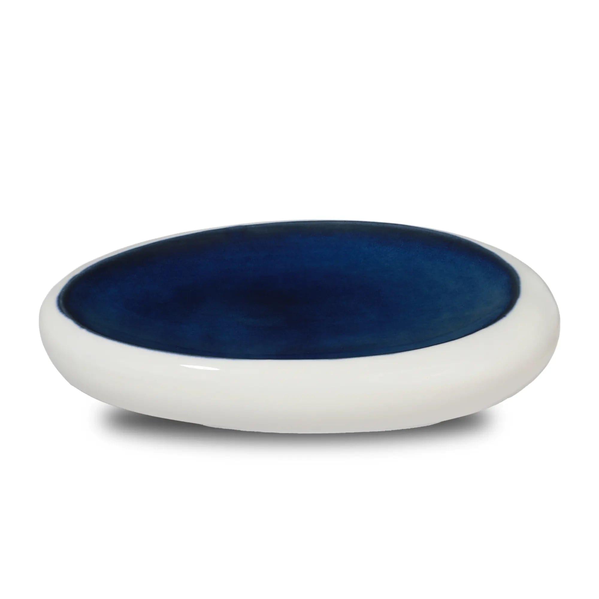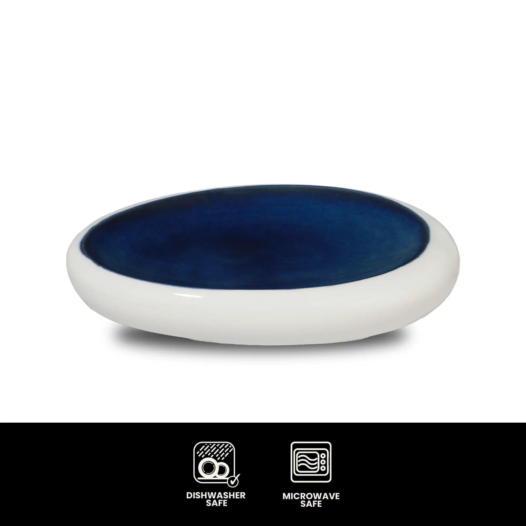 Don Bellini Mirage 12.31cm White Oval Porcelain Plate this crafted from premium porcelain, this elegant plate features a charming white design with a royal blue deep night accent on the rim. Versatile and durable, it's perfect for serving appetizers or desserts in any setting. Elevate your dining experience with this exquisite crockery piece.