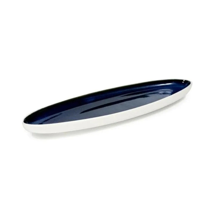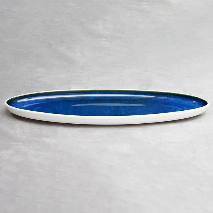 Don Bellini Mirage 14-36cm White Oval Porcelain Plate, a premium addition to your crockery collection. Crafted with high-quality porcelain, its oval shape and royal blue deep night accent on the rim exude elegance. Ideal for restaurants and homes, this versatile plate enhances any dining experience. Ensures an ample supply for hospitality businesses. Elevate your presentations with this timeless and sophisticated piece.