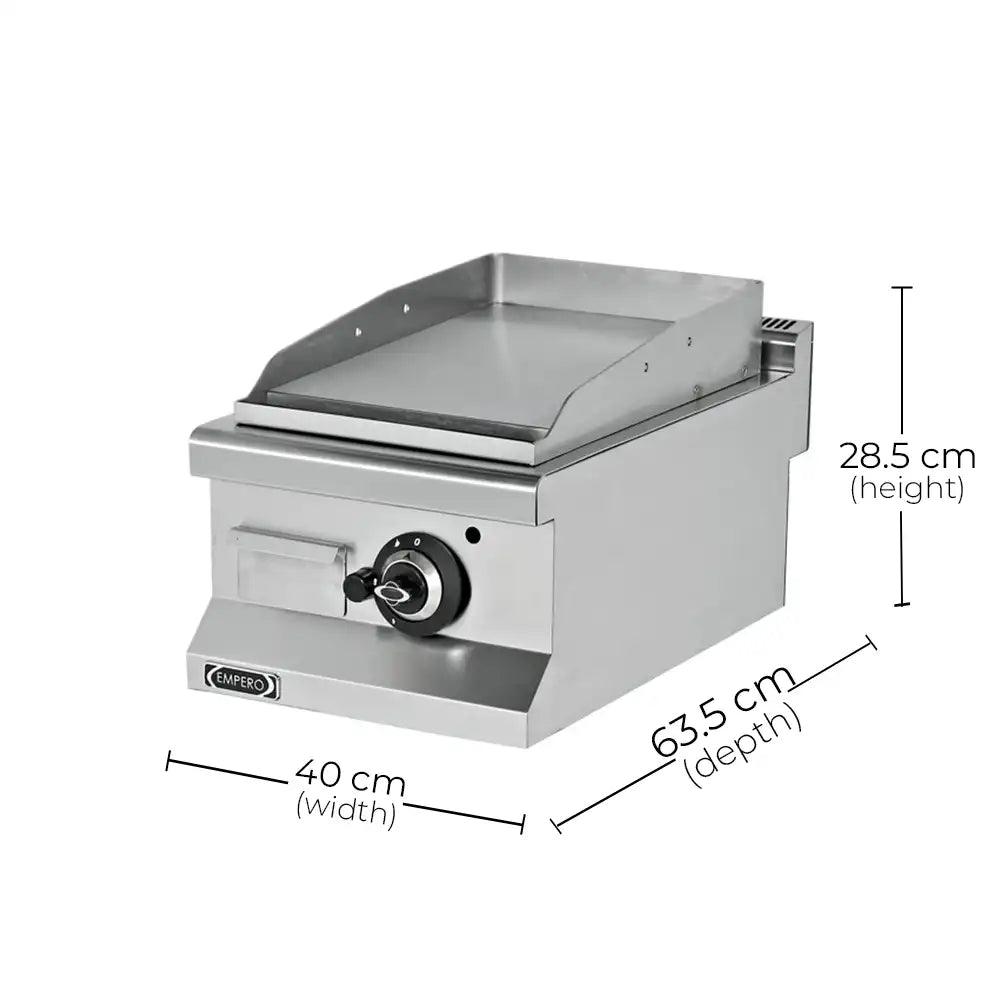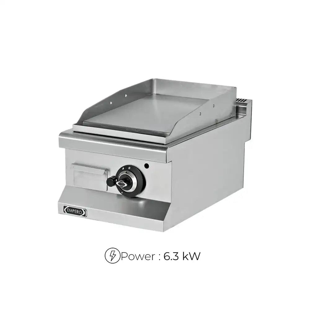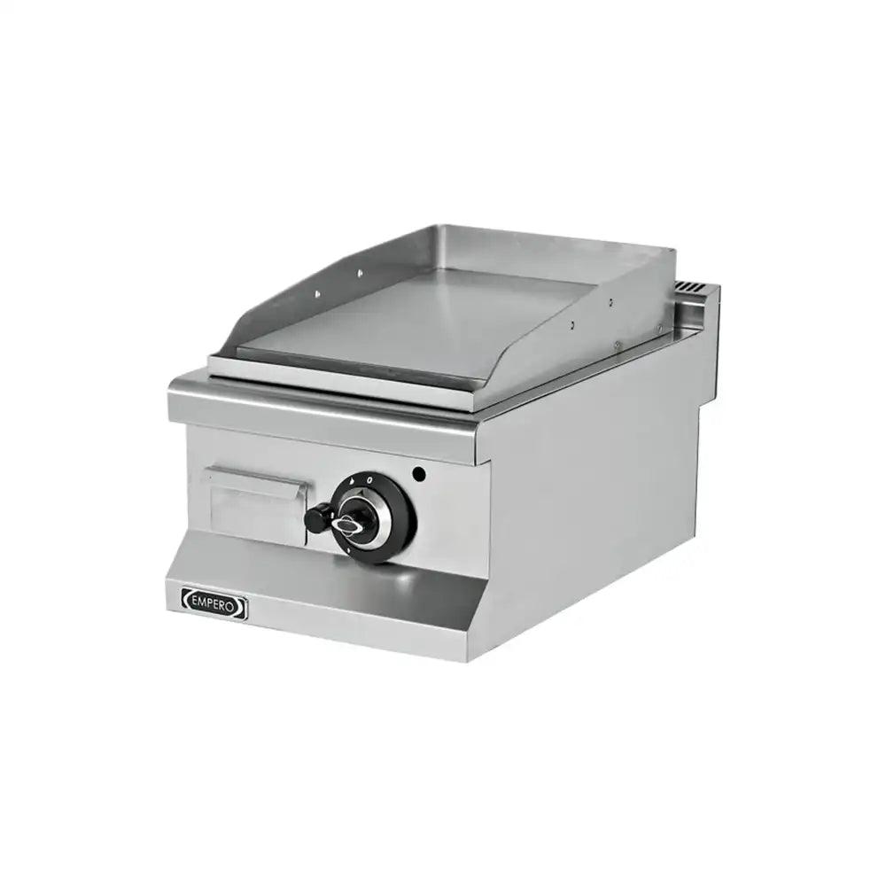 Empero's EMP.6IG010-K-LPG Gas Grill, with its stainless steel build and smooth chrome plate, provides durable and precise grilling for cafes, hotels, and restaurants. This compact and LPG-powered grill optimizes kitchen space, ensuring efficient and consistent heating, perfect for commercial culinary settings requiring reliable grilling capabilities.