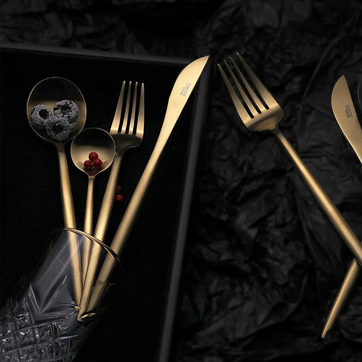 • Elegant matte gold finish adds a touch of sophistication to the table setting.