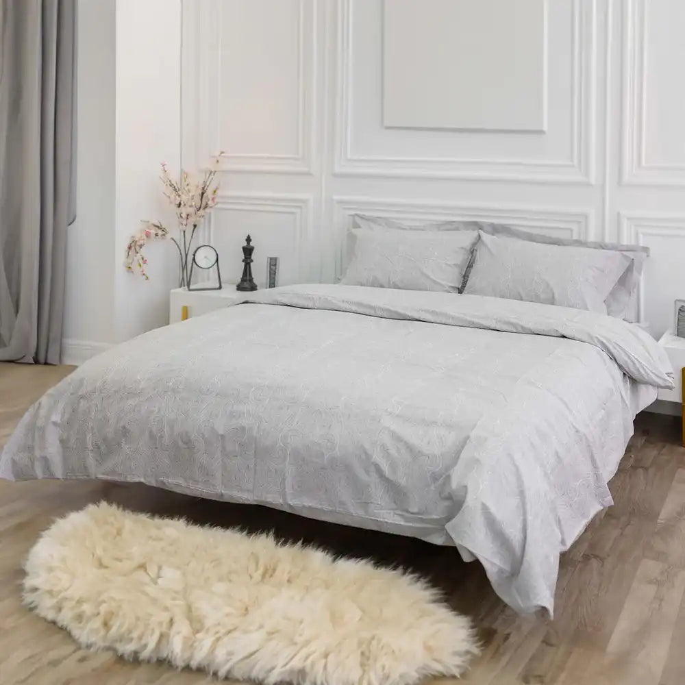 THS Elysian Paisley King Jacquard Cotton Duvet Cover Grey