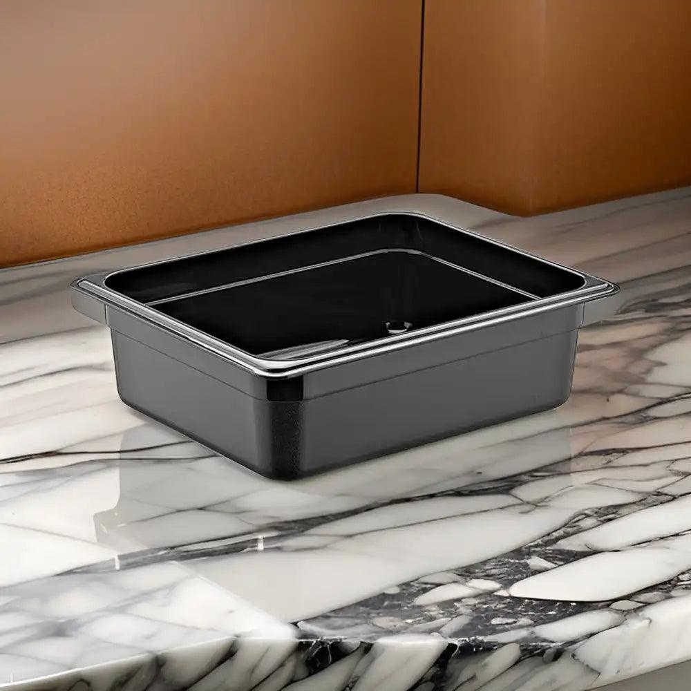 This black GN container from Rubber Plas Tech brings both style and functionality to your kitchen. It is crafted from super strong, crack-resistant plastic, it tackles everyday wear and tear with ease. The lightweight plastic stays cool even with hot food, making it comfortable to handle. No need for separate hot and cold containers - this one tackles both freezing and boiling temperatures. Cleaning is a breeze as it's dishwasher safe! Plus, they stack neatly to save space in your kitchen. This container is perfect for both professional kitchens and home cooks looking for a touch of style.