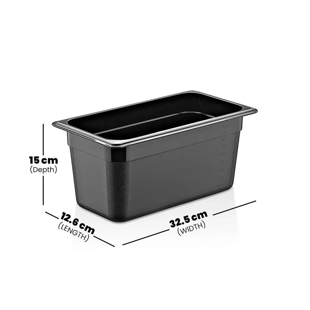 Rubber Plas Tech Black Polycarbonate GN 1/3 Container 15 cm deep