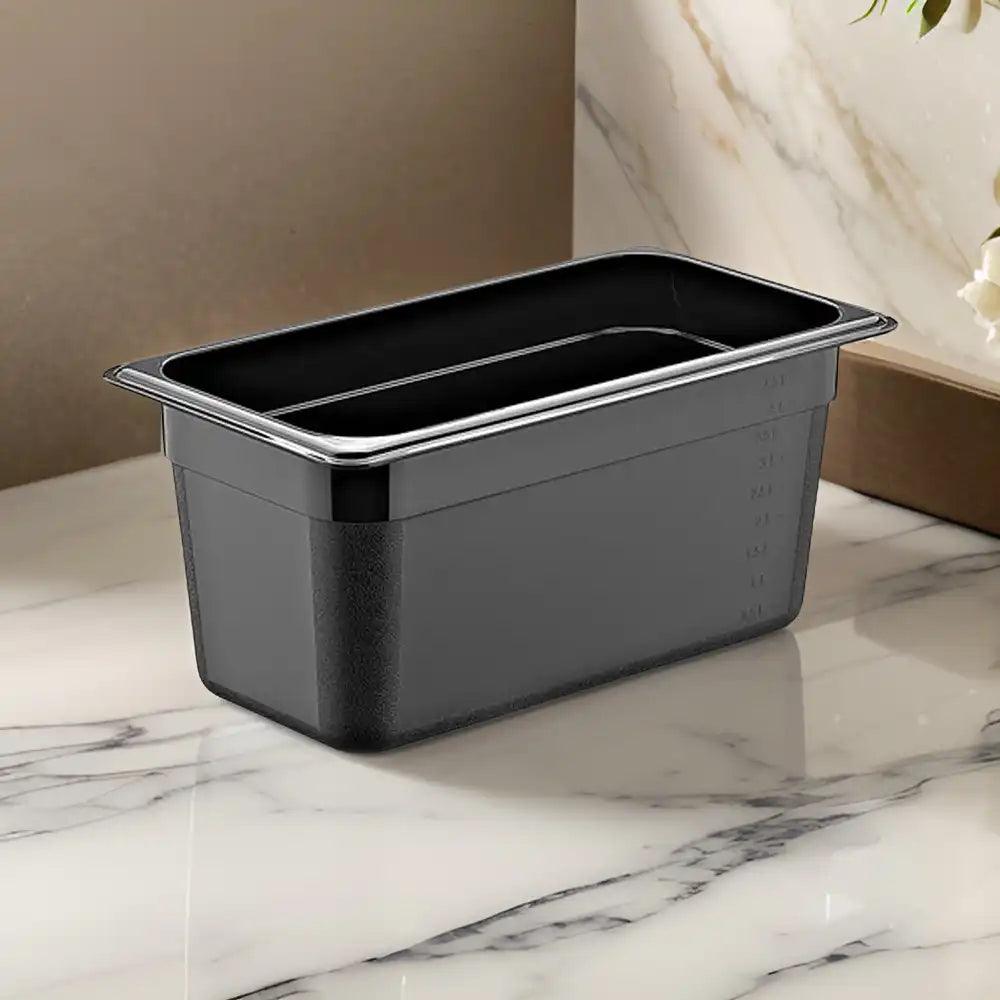 This black GN container from Rubber Plas Tech brings both style and functionality to your kitchen. It is crafted from super strong, crack-resistant plastic, it tackles everyday wear and tear with ease. The lightweight plastic stays cool even with hot food, making it comfortable to handle. No need for separate hot and cold containers - this one tackles both freezing and boiling temperatures. Cleaning is a breeze as it's dishwasher safe! Plus, they stack neatly to save space in your kitchen. This container is perfect for both professional kitchens and home cooks looking for a touch of style.