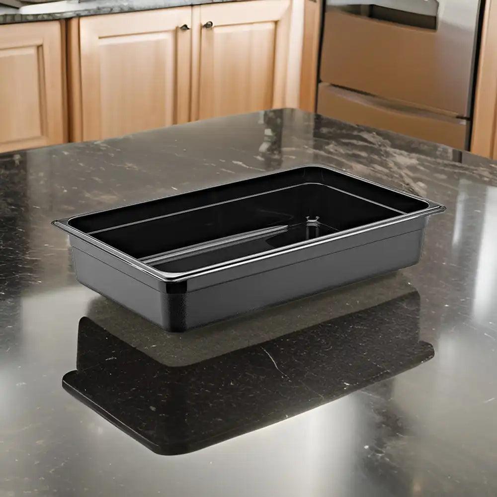 This black GN container from Rubber Plas Tech brings both style and functionality to your kitchen. It is crafted from super strong, crack-resistant plastic, it tackles everyday wear and tear with ease. The lightweight plastic stays cool even with hot food, making it comfortable to handle. No need for separate hot and cold containers - this one tackles both freezing and boiling temperatures. Cleaning is a breeze as it's dishwasher safe! Plus, they stack neatly to save space in your kitchen. This container is perfect for both professional kitchens and home cooks looking for a touch of style.