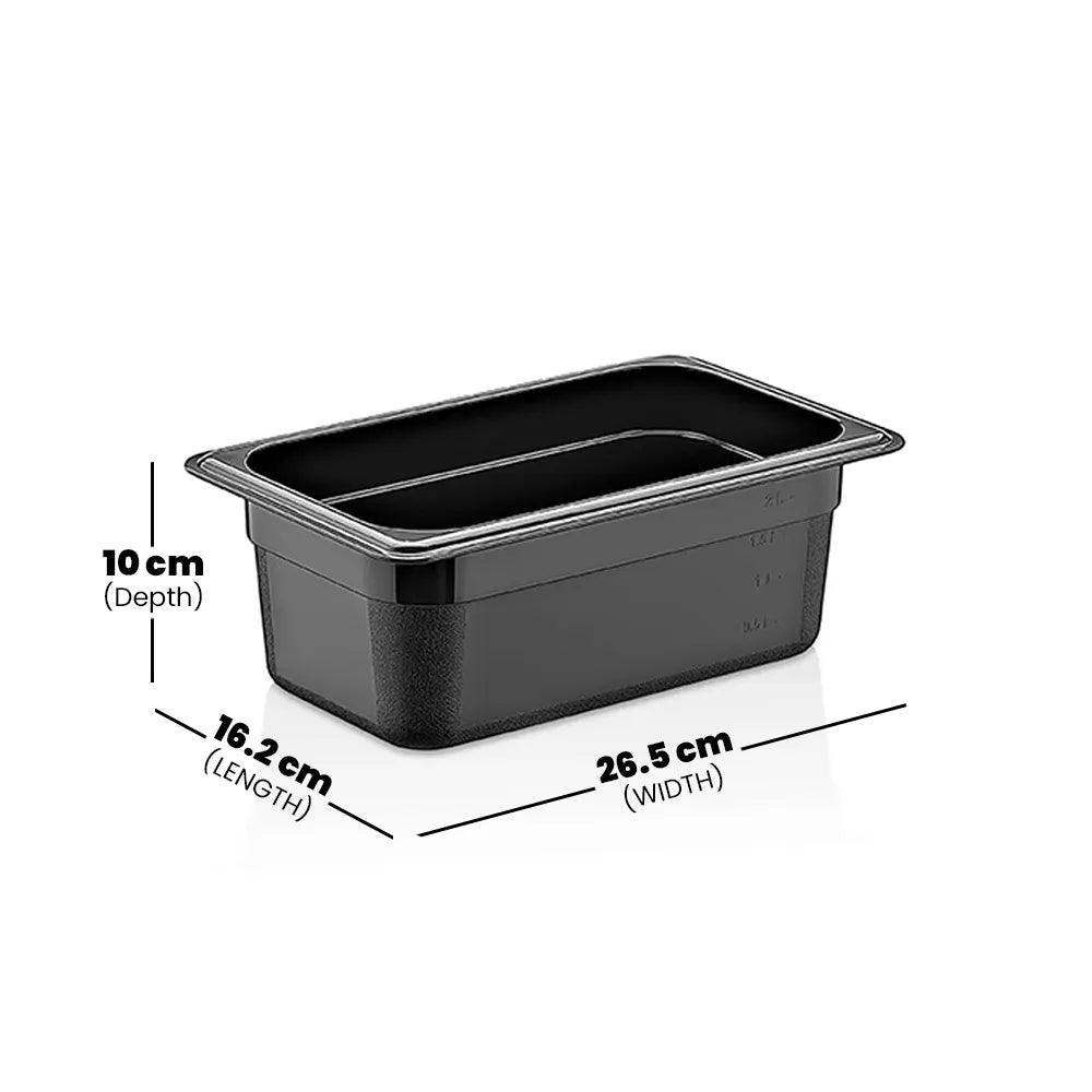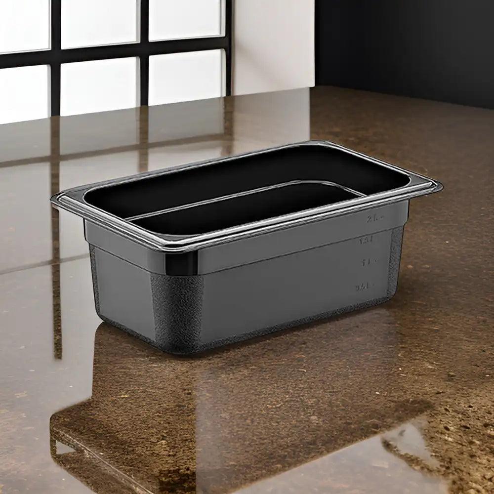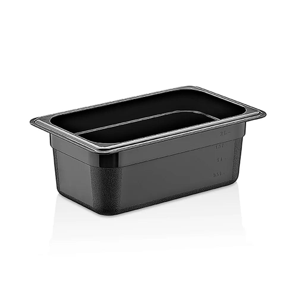 This black GN container from Rubber Plas Tech brings both style and functionality to your kitchen. It is crafted from super strong, crack-resistant plastic, it tackles everyday wear and tear with ease. The lightweight plastic stays cool even with hot food, making it comfortable to handle. No need for separate hot and cold containers - this one tackles both freezing and boiling temperatures. Cleaning is a breeze as it's dishwasher safe! Plus, they stack neatly to save space in your kitchen. This container is perfect for both professional kitchens and home cooks looking for a touch of style.