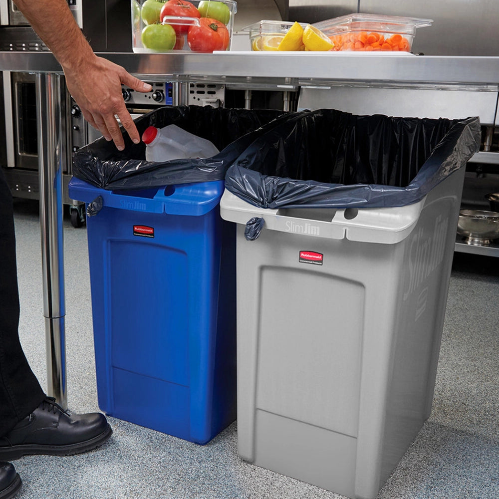 Exclusively crafted for the hospitality sector, this Rubbermaid Slim Jim Under Counter Bin offers a combination of functionality and durability. With dimensions of W40 x H76.2 x D56.5cm, it is constructed from robust polyethylene, ensuring prolonged use. The design includes integrated venting channels that facilitate liner removal, reducing the risk of worker injury and boosting productivity. It features bag cinches for knot-free liner changes and has moulded handles for enhanced grip during lifting and emptying. Its capacity is 87L, making it an ideal solution for high-traffic venues.