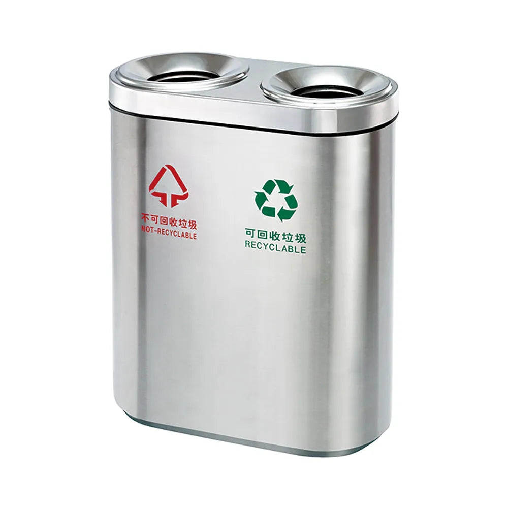 THS bin features an inside liner container made of galvanized steel, enhancing its eco-friendly appeal and suitability for modern public spaces. Crafted from durable 201 stainless steel with a brushed body and a 304 stainless steel brushed lid, it boasts a thickness of 0.8mm, ensuring long-term durability. With a capacity of 2 x 42 liters, it's a practical and stylish choice for waste management.