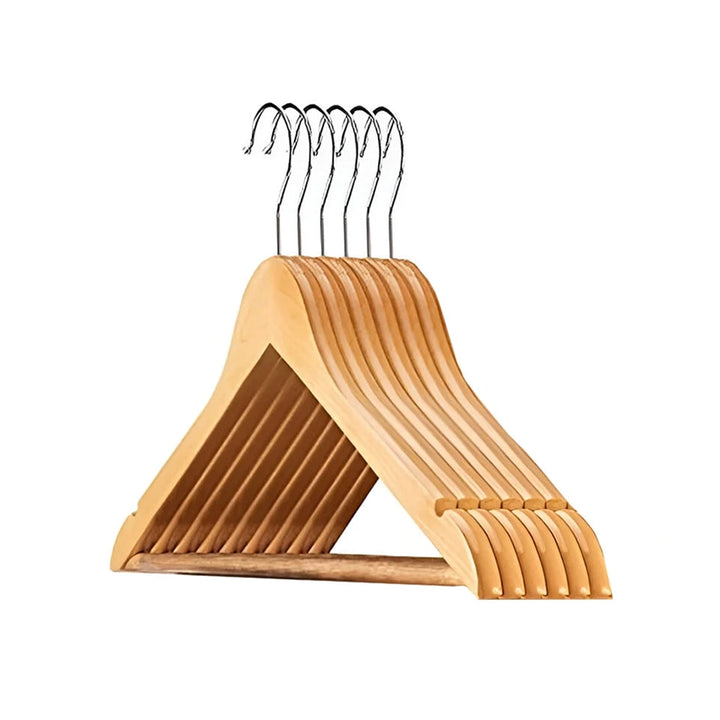 Introducing the Roomwell UK Male Wooden Hanger, meticulously crafted from sturdy natural Lotus hardwood to redefine the way you store your garments. Designed with the highest care, this hanger features an anti-rust chrome 3mm hook that swivels 360 degrees, ensuring maximum functionality and wardrobe organization. Its lightweight yet solid construction makes it an ideal choice for the hotels, restaurants, and catering industry looking for durable and elegant wardrobe solutions. The non-slip rounded bar is thoughtfully incorporated to hold pants securely, while the perfectly cut notches on the hanger shoulders provide the most convenient solution for hanging shirts without slips. Measuring 44.5 cm in length, 1.2 cm in width, and 22 cm in height, it’s designed to accommodate a variety of garment sizes, offering versatility and utility.