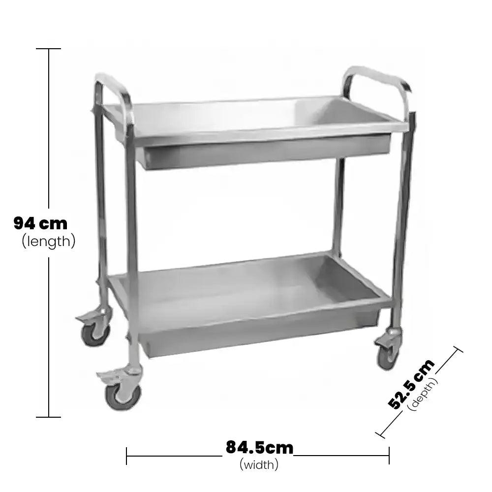 THS 101801 2 Tier Round Tube Beverage Service Trolley, 84.5 × 52.5 × 94 cm