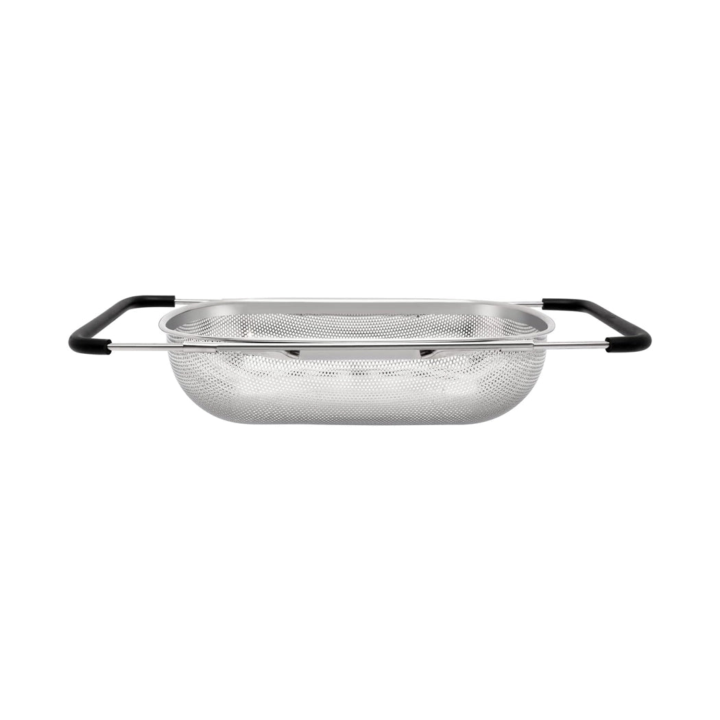 The Prestige Sink Colander is made of highly durable stainless steel and is designed to handle daily kitchen use. Its thin mesh effectively strains even the smallest items, such as beans and vegetables. Its expanded shape allows it to fit snugly over any kitchen sink, increasing convenience by removing the need for extra containers. It is safe for daily use and is made from non-toxic ingredients, promising that your food is not polluted. The colander is not only visually appealing with its solid base, but it is also rust-proof, making it a dependable addition to any business environment. It's also dishwasher safe, which makes cleaning easier.