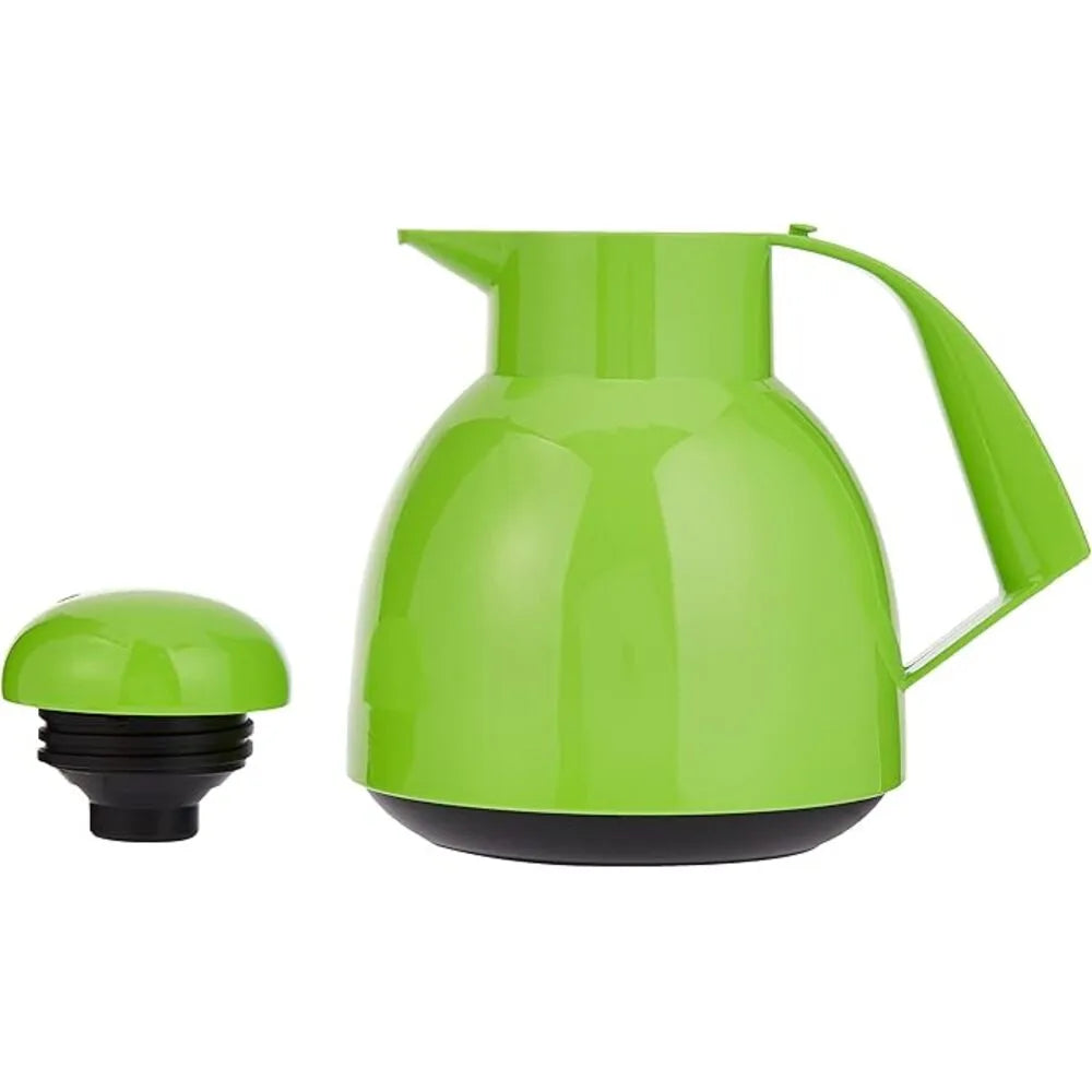 The Helios Flask Day in Kiwi offers a 1-liter capacity and is made from robust, high-gloss plastic. This thermos is designed to keep beverages hot or cold for extended periods, with a heat retention of up to 75°C after 6 hours. Its lightweight, portable design and rotary lock lid make it perfect for use in hospitality settings, including meetings and gatherings. With a height of 21.2 cm, this stylish and practical jug ensures easy serving and maintenance.