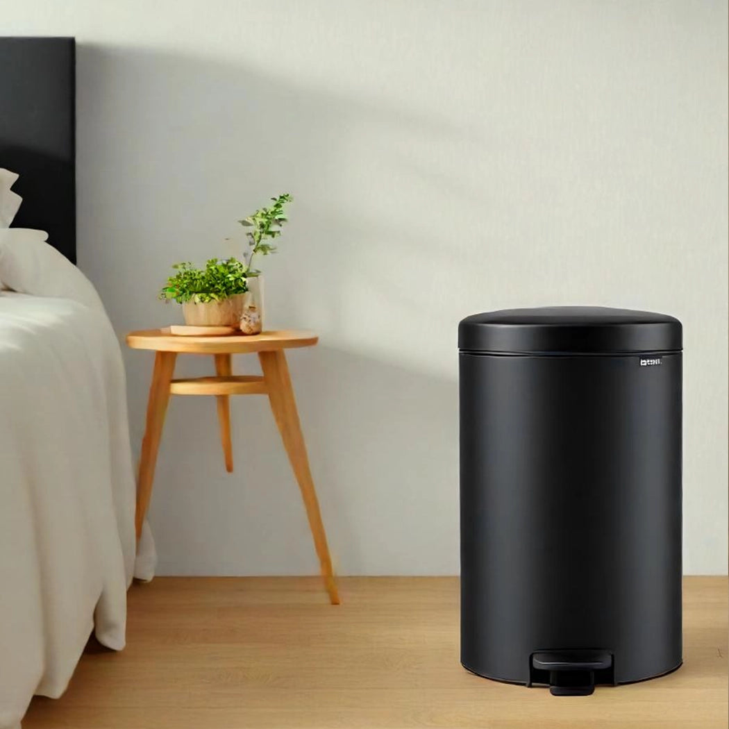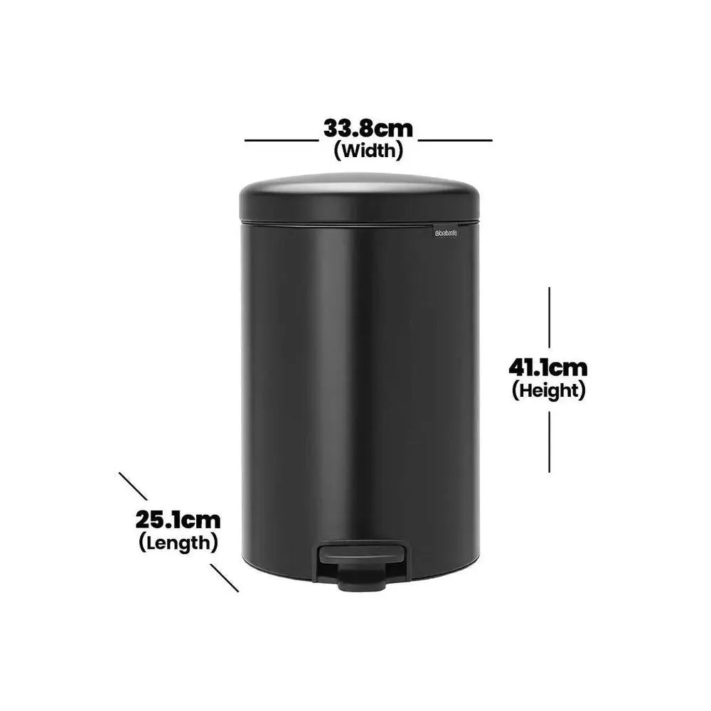Brabantia Newicon Matt Black Stainless Steel Pedal Bin, 12L with Plastic Bucket