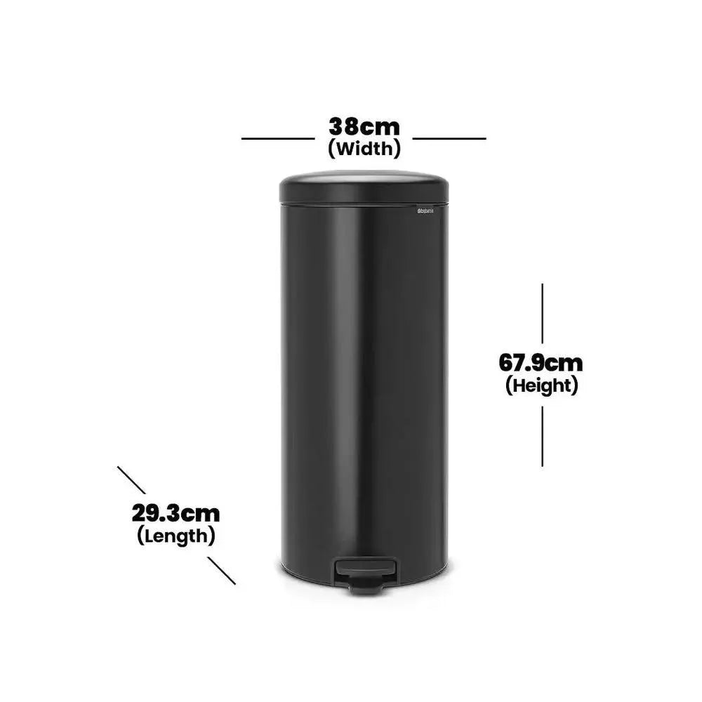 Brabantia Newicon Matt Black Stainless Steel Pedal Bin, 30L with Plastic Bucket