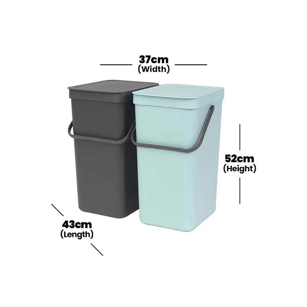Brabantia Sort & Go Mint & Grey Plastic Bin, 2x16L