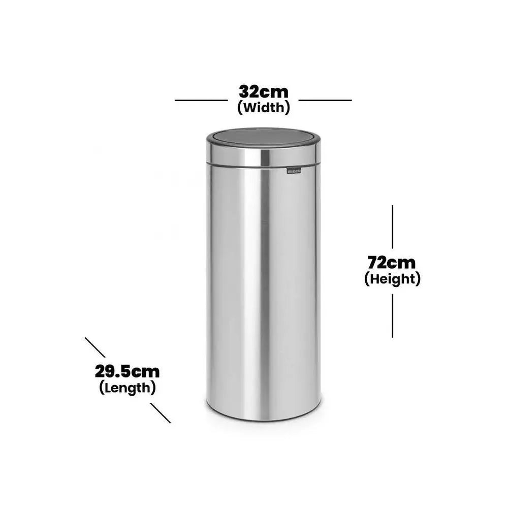 Brabantia Stainless Steel Touch Bin, 30L with Plastic Bucket